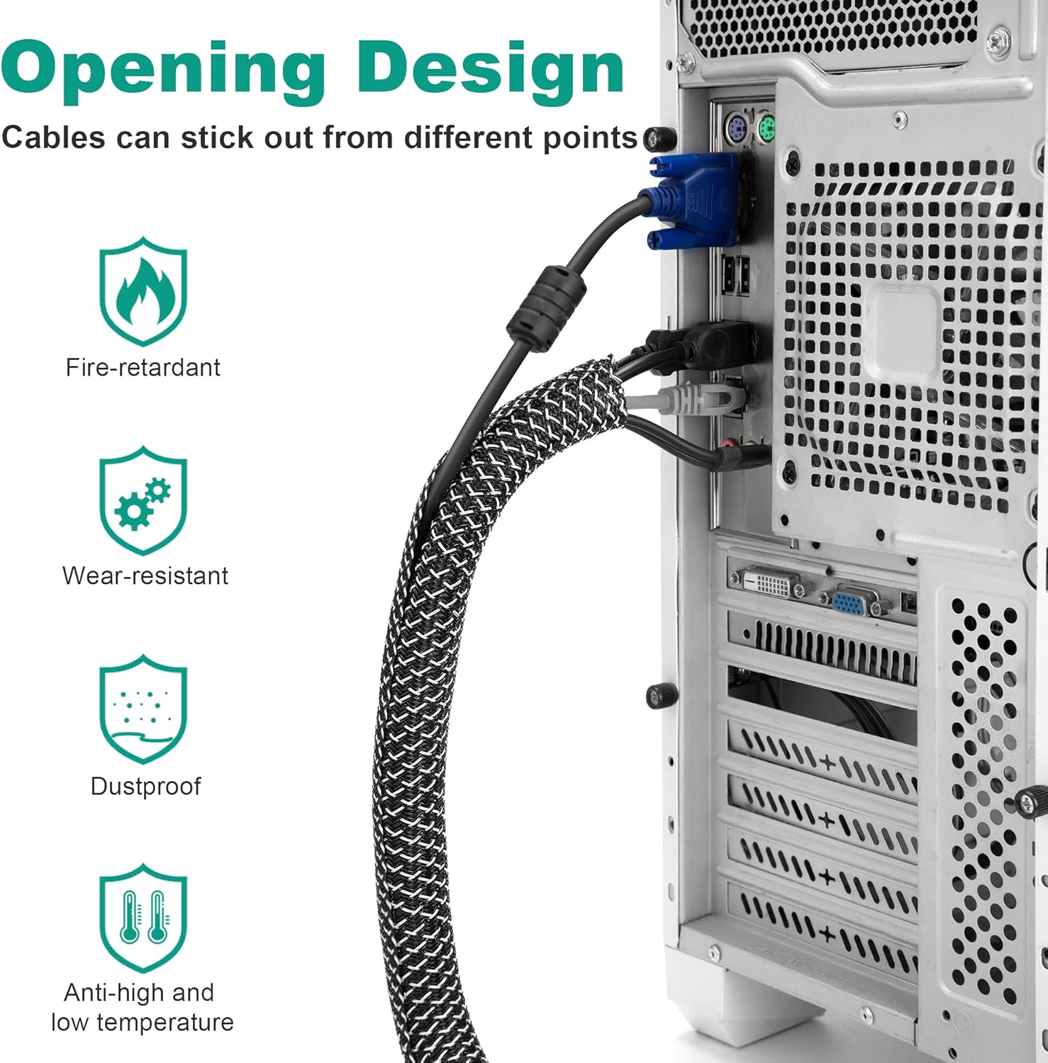 - Self-wrap Design, Easy to Use: Our braided cable sleeve will close on itself when install cables, easy for removing or adding cables.