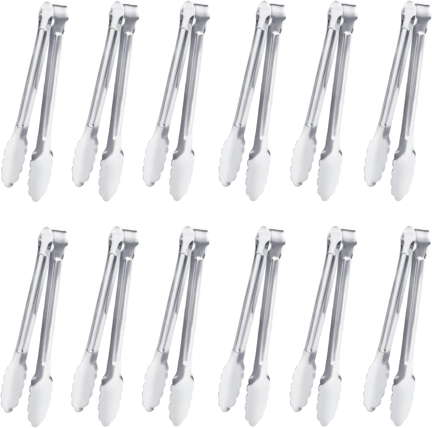 Serving Tongs,Buffet Tongs, Dmoera Stainless Steel Food Tong Serving Tong Small Serving Tongs Stainless Steel Mini Appetizer Tongs, Set of 12