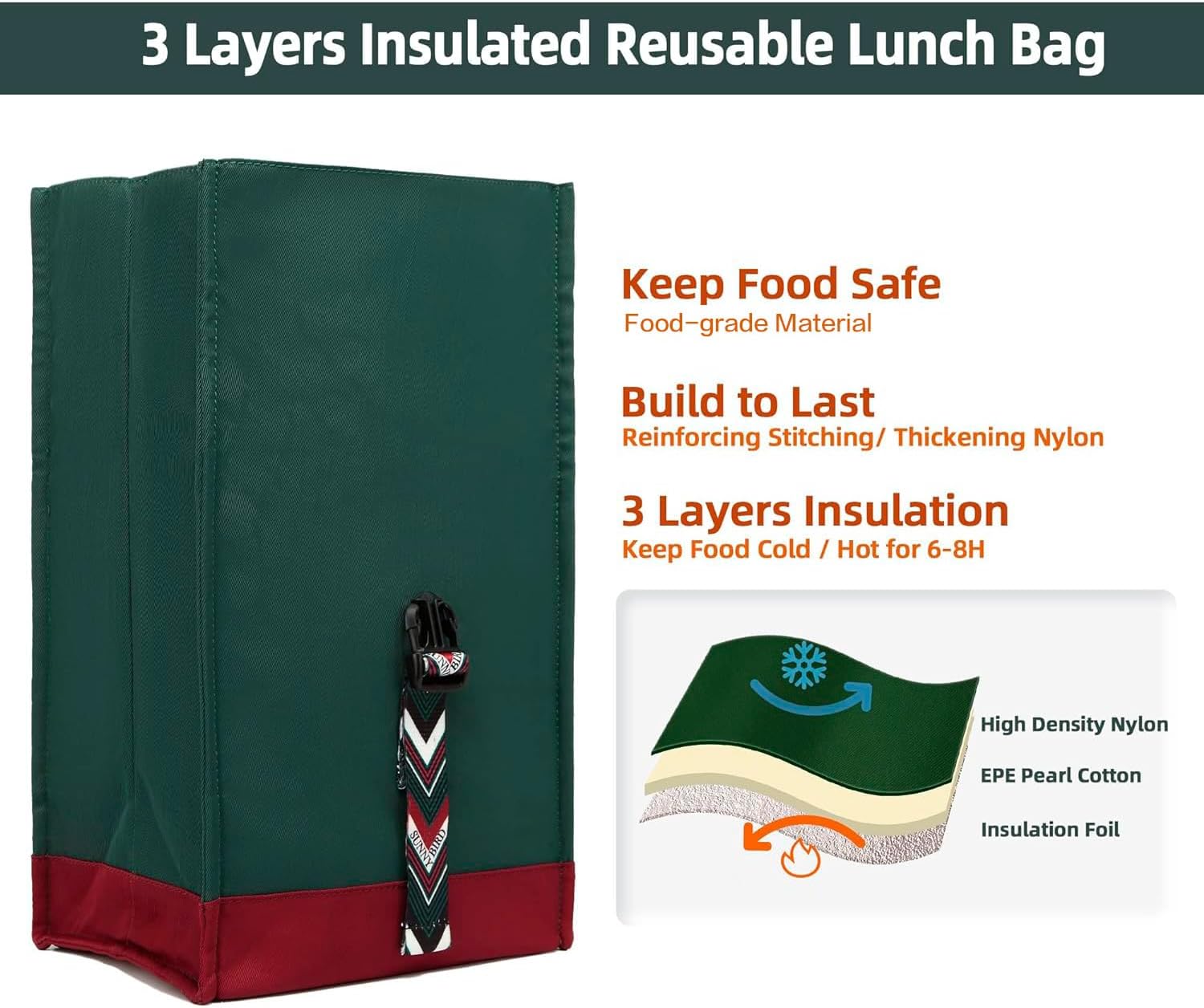 - Ultimate performance and durable - excellent & ultimate performance comes from our temperature controlled design. Our roll-up tops, triple-layer-insulation seal in cool & hot air, keeping your food fresh for several hours. Combined with high-density nylon fabric, this women lunch bag’s exterior can stand up to any humid environment, and also makes it easy to wipe clean.