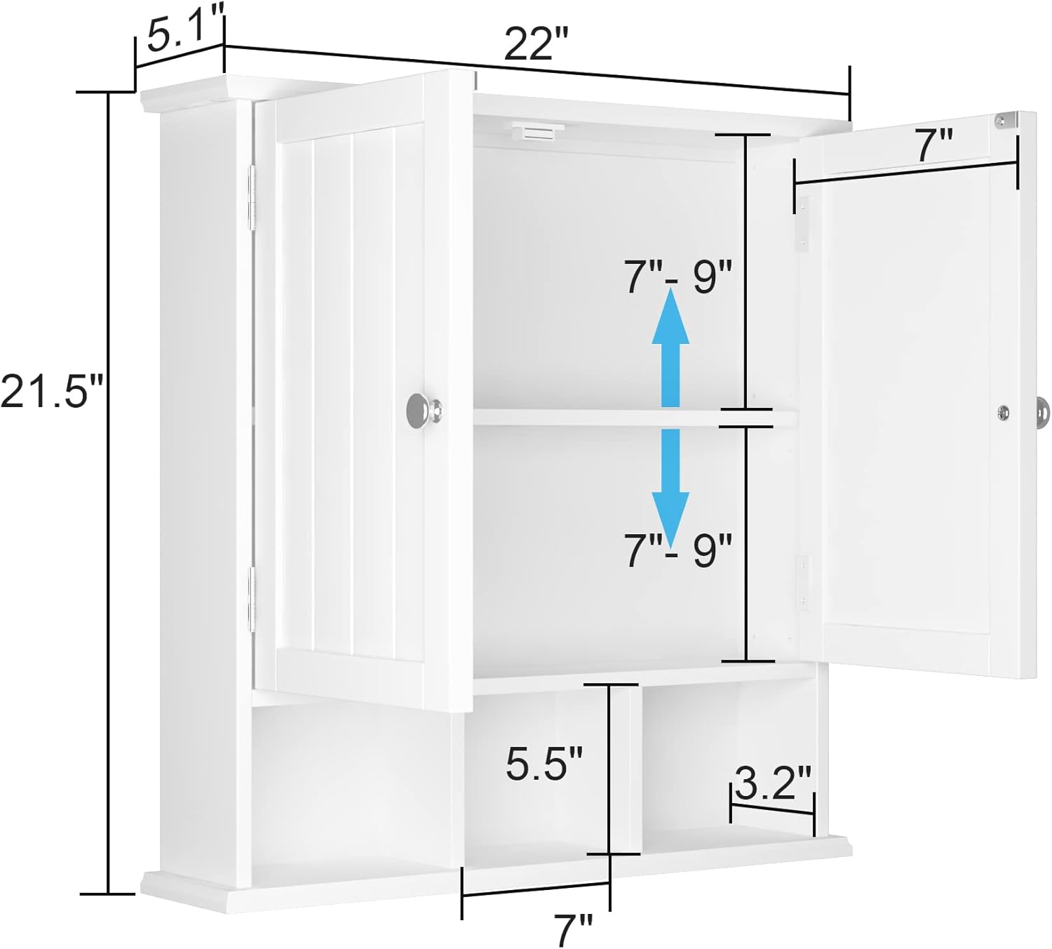 ChooChoo Bathroom Cabinet Wall Mounted 2-Door with 3 Open Shelves, Wooden Medicine Cabinets with Adjustable Shelf, Space Saver Storage Cabinets Over The Toilet for Bathroom&Living Room, White