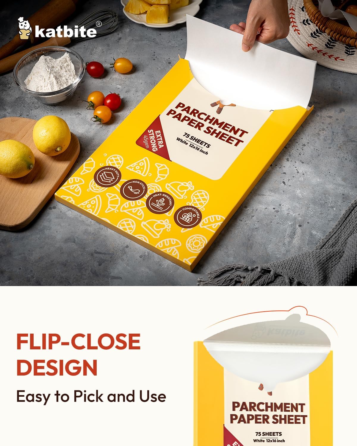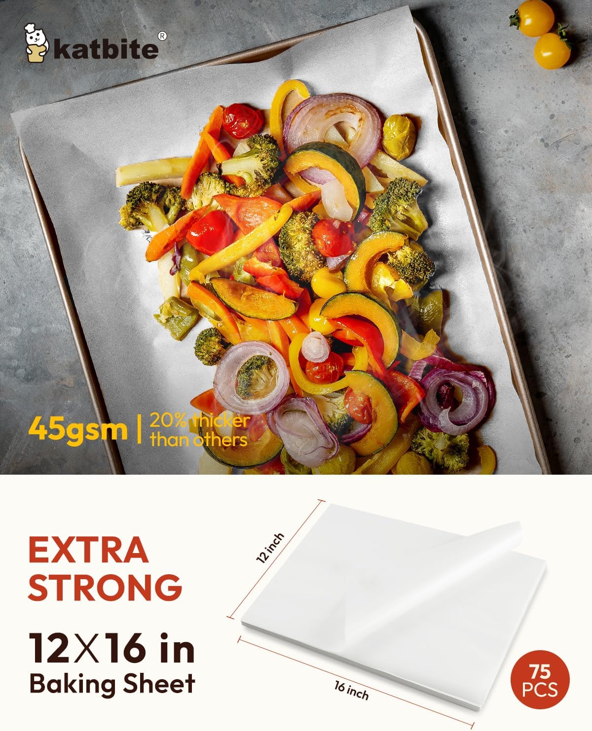![Katbite 75Pcs White Parchment Paper Sheets 12x16IN, Pre-Cut Heavy Duty Parchment Baking Paper, Non-Stick Half Sheet White Baking Parchment Paper for Air Fryer, Baking Cookie Pans[Advanced Series]](http://1h0u63-nw.myshopify.com/cdn/shop/files/81J45q3wk2L._AC_SL1500.jpg?v=1761706223&width=1445)