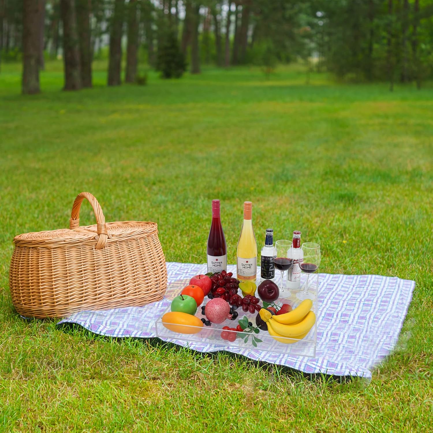 18×18 Inches Clear Acrylic Serving Tray with Handles Extra Large Ottoman Tray Decorative Trays Spill-Proof Coffee Table Space Saver Oversize Counter top Organizer Platter with Safe Edge