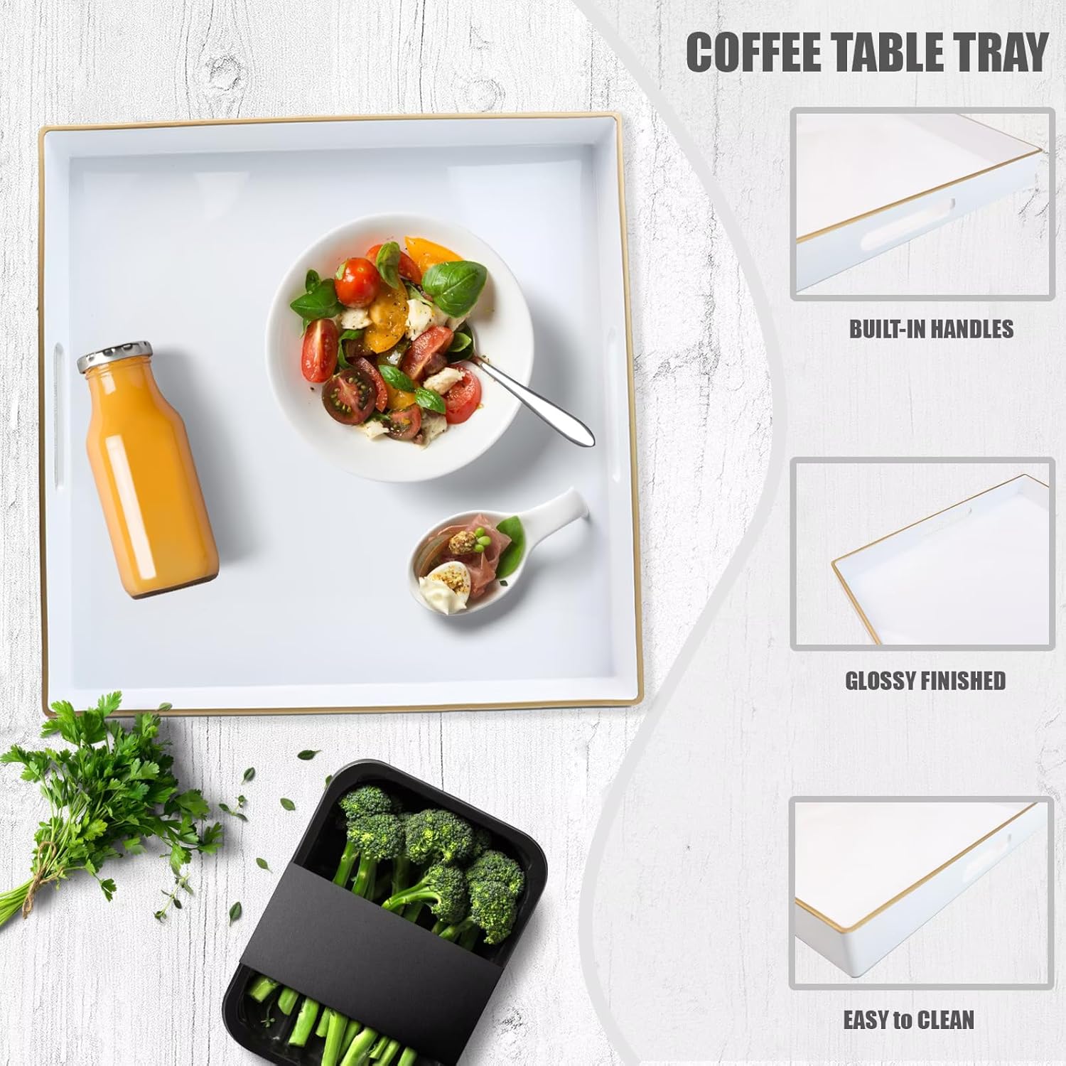 Spsyrine Decorative Tray, 13" Plastic Square Coffee Table Tray with Handles for Living Room, Ottoman, Bathroom Decor