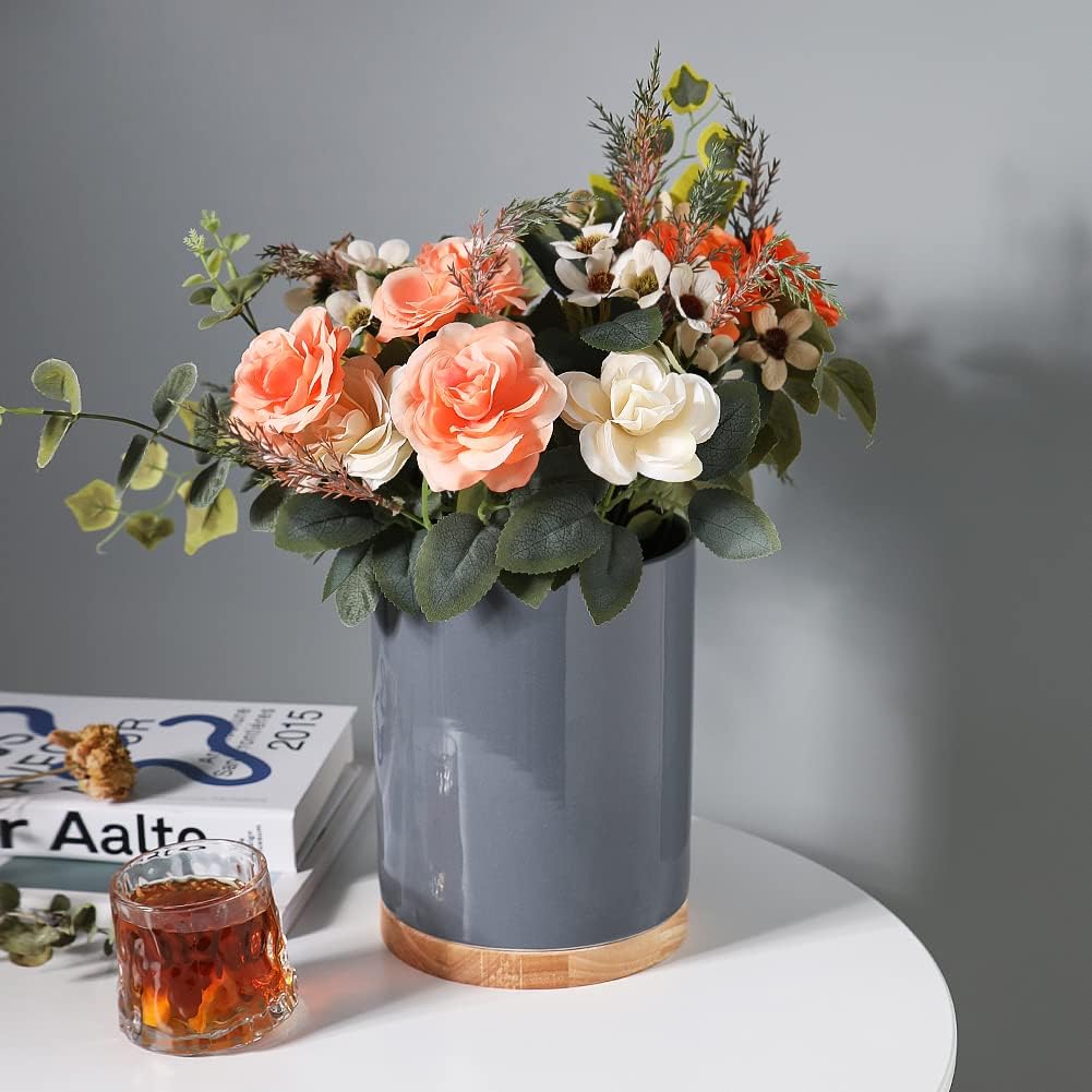 Sweejar Kitchen Utensil Holder with Wooden Bottom, 8.2" Ceramic Utensil Crock to Hold Spatulas for Cooking Countertop, Housewarming, Wedding, Birthday Gift (Gray)
