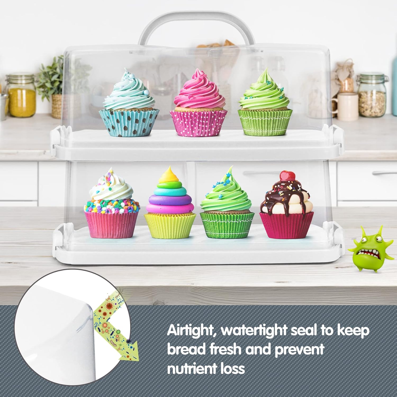 2-Pack Plastic Rectangular Bread Box with Clear Lid, Loaf Cake Keeper, Portable Bread Keeper Storage Container with Handle (White)