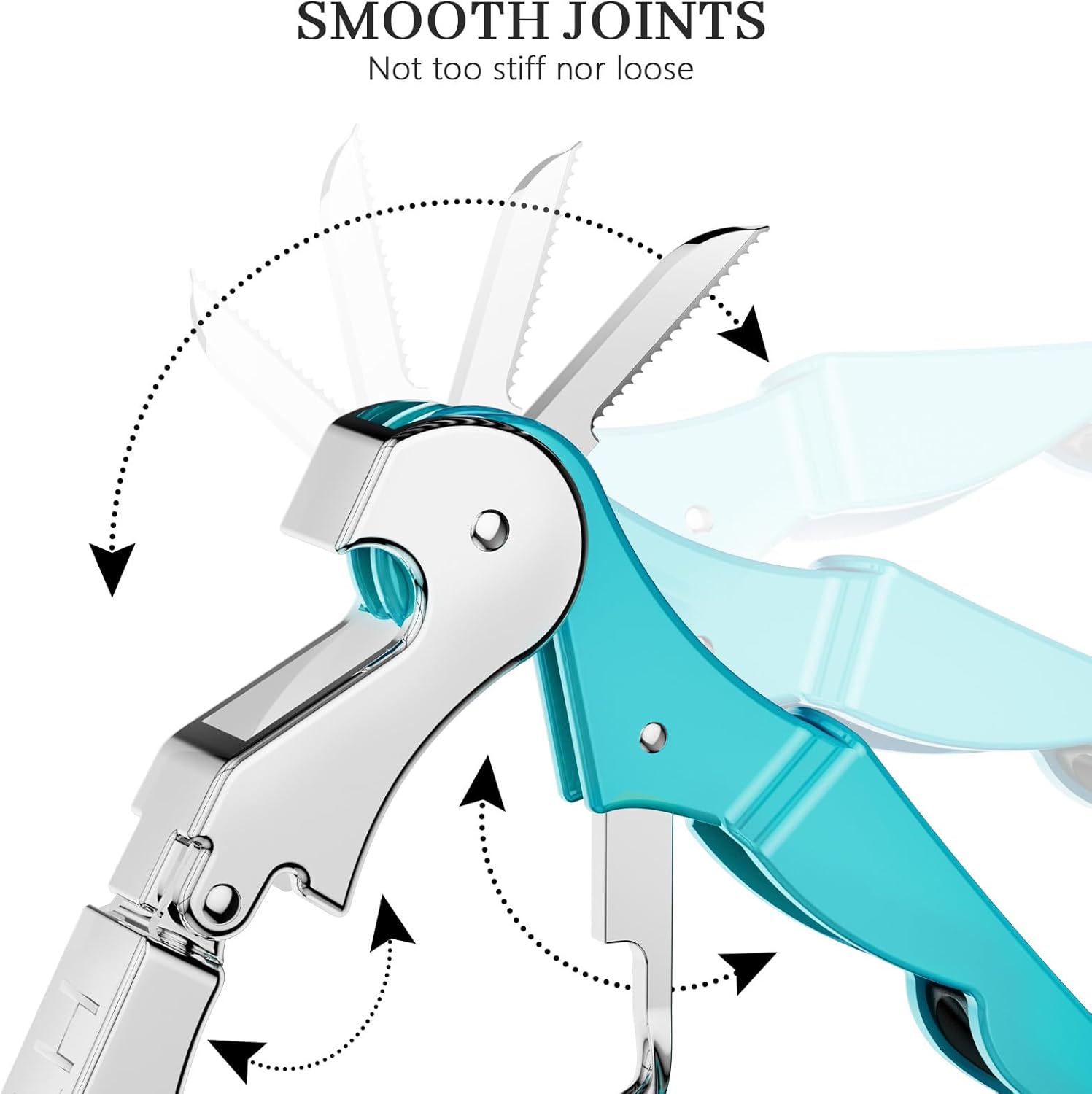 - MULTITOOL WINE OPENER: Made from 420 stainless steel and featuring a durable zinc alloy handle. It includes a classical double-hinged design that helps you pull the cork from the bottle with no effort. Featuring a built-in foil cutter and bottle cap opener, everything you need to open a bottle of wine or beer is conveniently and easily available to you in one tool