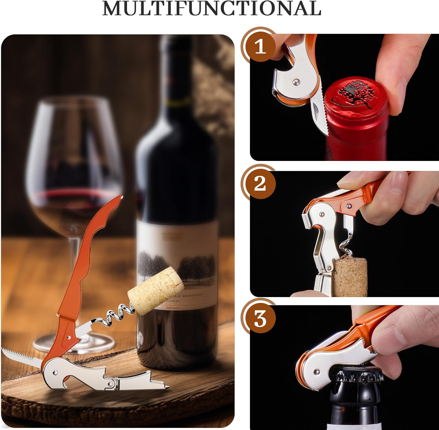 HYZ 2-Pack Wine Opener Waiter Corkscrew, Professional Wine Key for Servers, Bartender with Foil Cutter, Manual Wine Bottle Opener Double Hinged (Orange)