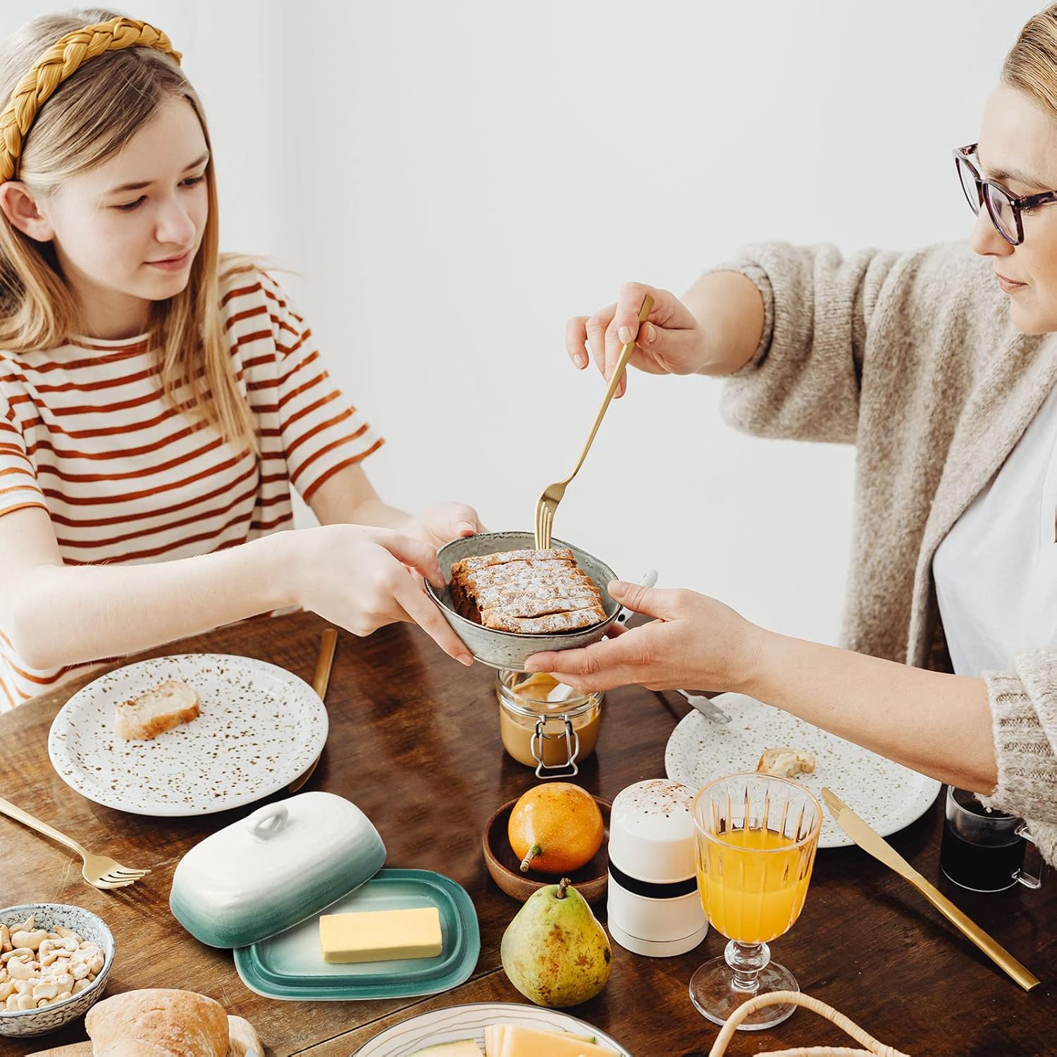 - A BEAUTIFUL PRESENT:Our butter container with a fantastic appearance will be a housewarming present for your lovers at Christmas, Thanksgiving, wedding and New Year. The ceramic butter dish can also blend into your home and kitchen. Give your stick of butter a nice home with our porcelain butter holder.