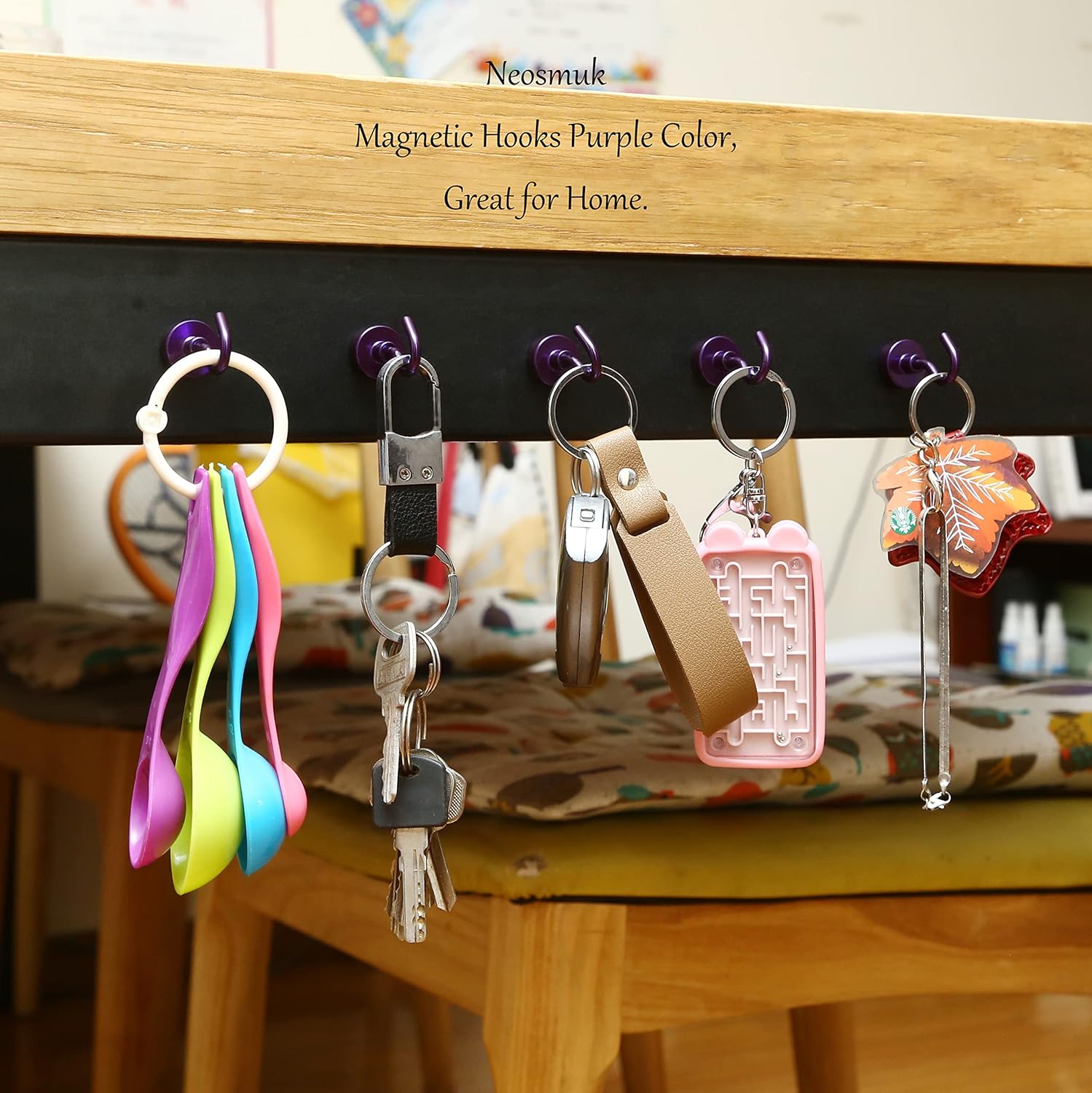 Neosmuk Magnetic Hooks,30lb+ Heavy Duty Earth Magnets with Hook for Refrigerator, Extra Strong Cruise Hook for Hanging, Magnetic Hanger for Cabins, Grill (Purple, Pack of 10)