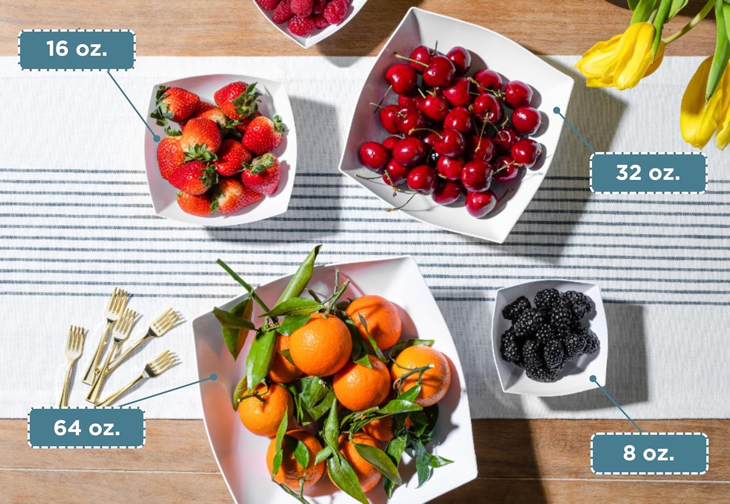 Posh Setting - White Plastic Serving Bowls for Party (8oz - 4 Pack) Square, Disposable, Salad & Fruit Bowls for Party Table, Candy Containers for Candy Buffet