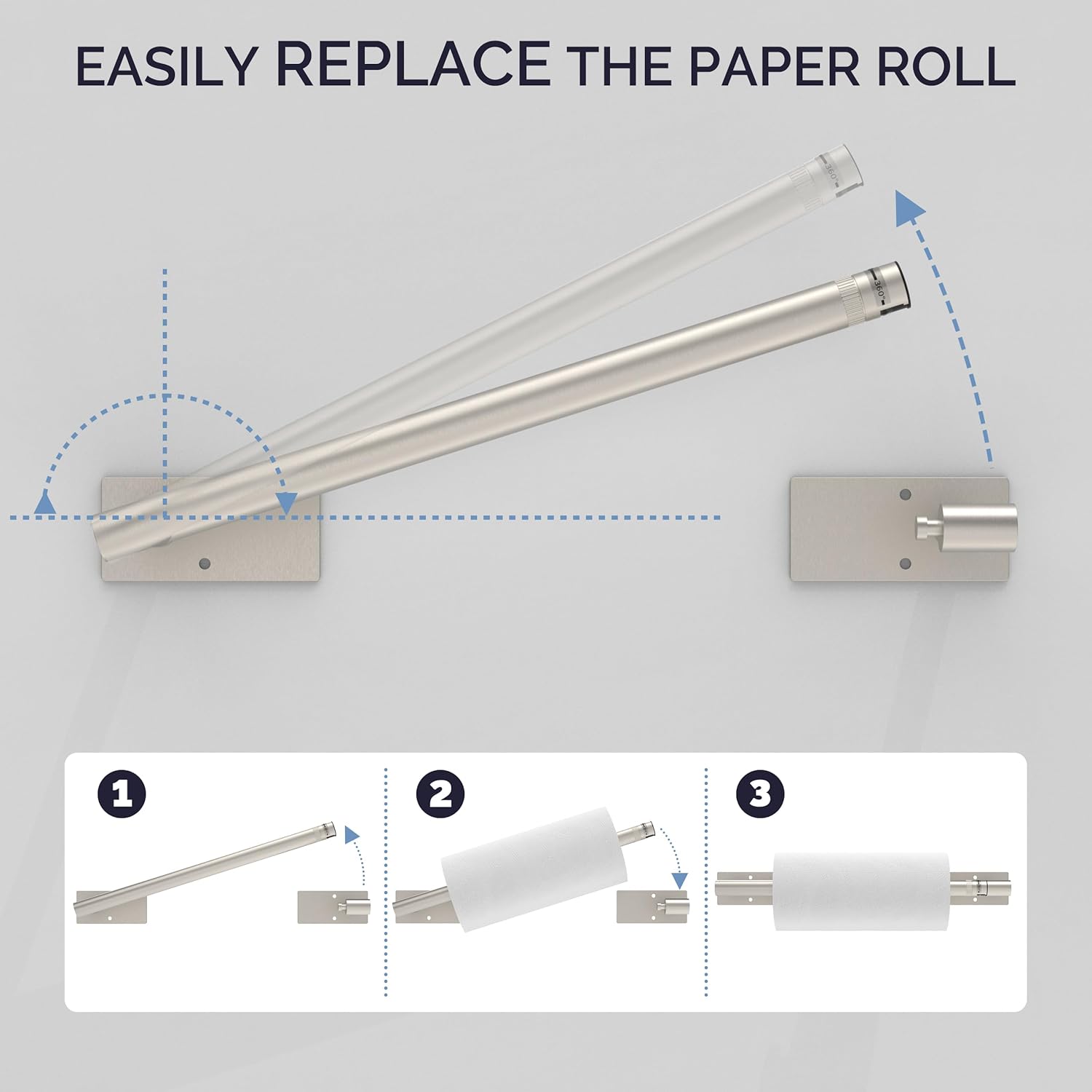 - [Double-Post Pivoting] The double-post pivoting design makes wall mount paper towel holder simple to replace the paper towels. The paper towel holder wall mount's revolving buckle successfully keeps the kitchen towel from coming off, and the symmetrical design adds aesthetic value to your kitchen