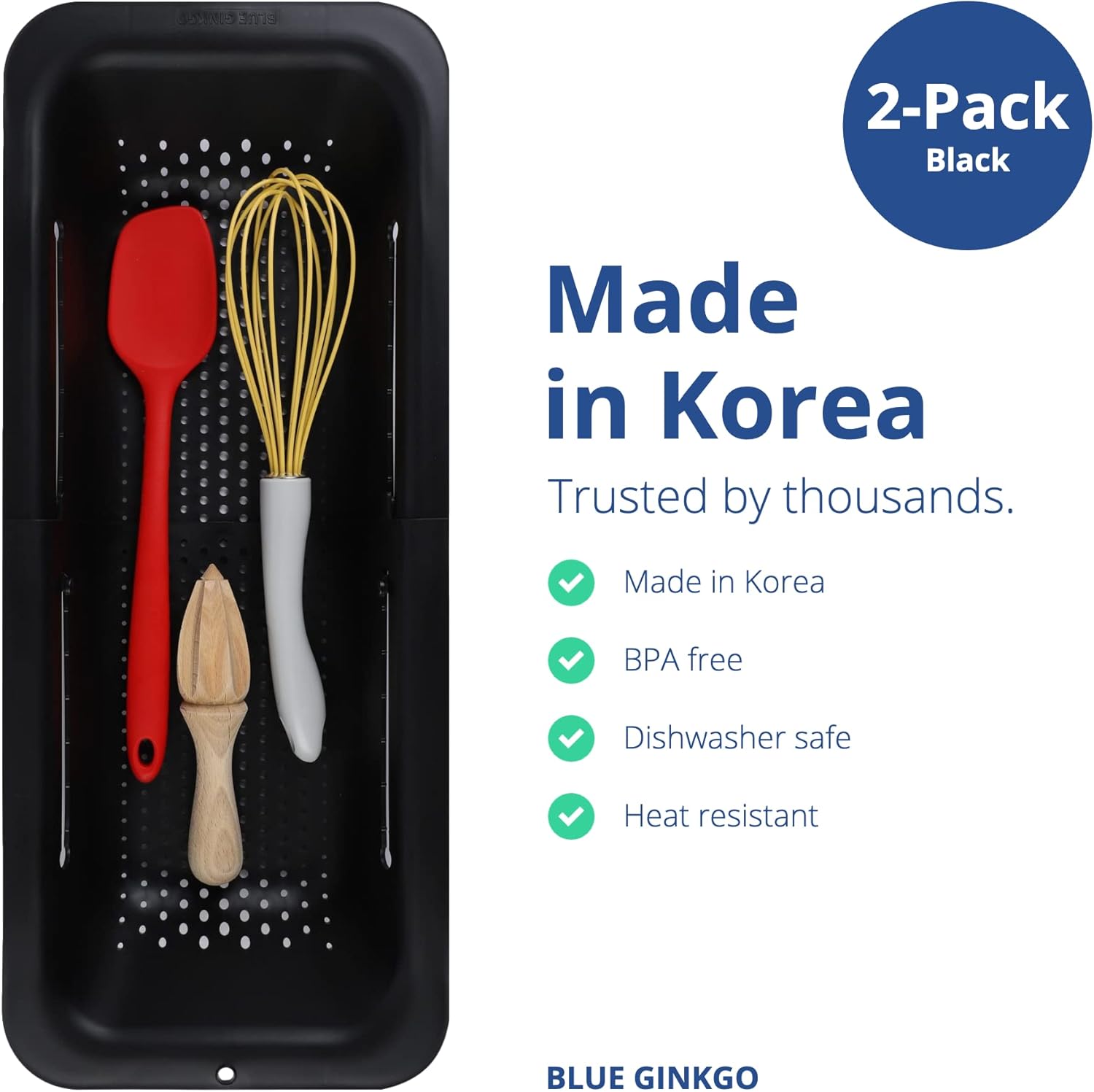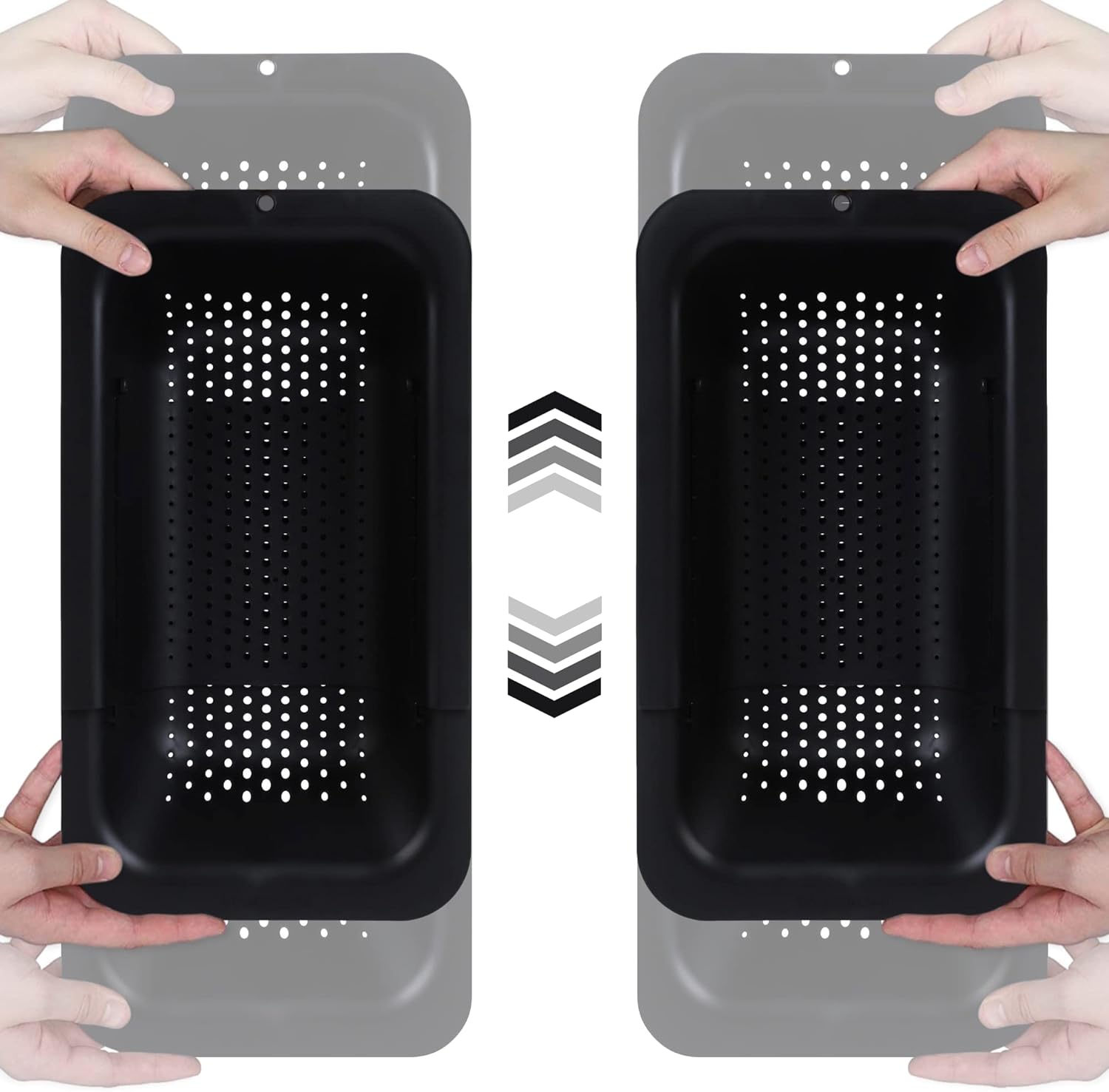 BLUE GINKGO Sink Colander Baskets - (Pack of 2) Wash Vegetables and Fruits, Drain Cooked Pasta and Dry Dishes - Extendable - New Home Kitchen Essentials (2 Black)