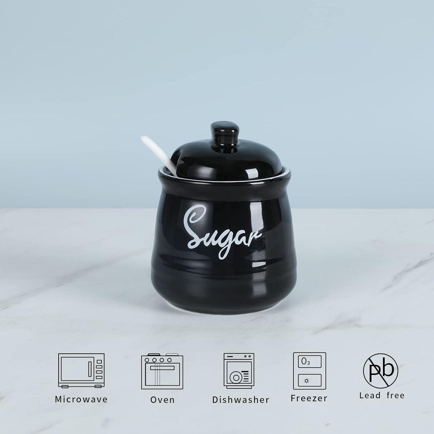 - PERFECT COMBINATION: This sugar bowl is equipped with a perfect lid and a small spoon. The lid can keep your ingredients away from dust. There is a perfect notch on the lid for placing the spoon, so you don’t have to worry about placing the spoon randomly