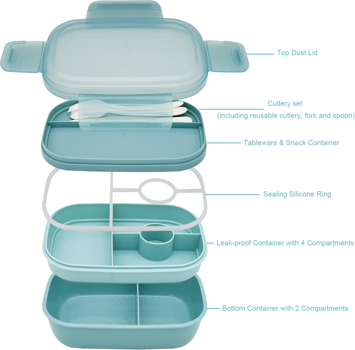 - Partially Leak-Proof: The intermediate container has a leak-proof design with a food-safe silicone seal to keep food fresh on the go and prevent dips from leaking. (Note: The bottom container is not leak-proof)