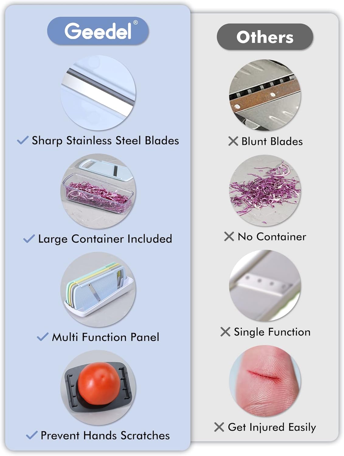 Geedel Professional Mandoline Slicer for Kitchen, Multi Purpose Vegetable Slicer Cutter, Vegetable Cutter Onion Cutter for Veggie Fruit Cheese
