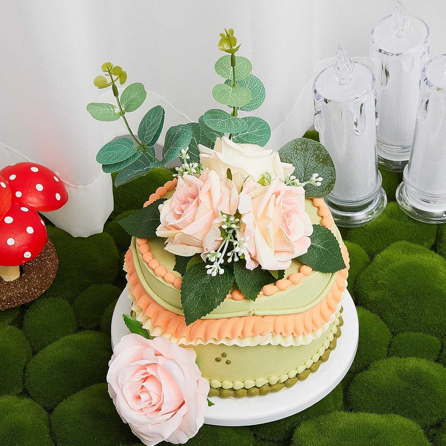 Taiyin 9 Pcs Flower Cake Topper Boho Cake Decorations Eucalyptus Flowers Floral Decorations for Women Wedding Birthday Party Anniversary(Light Pink)