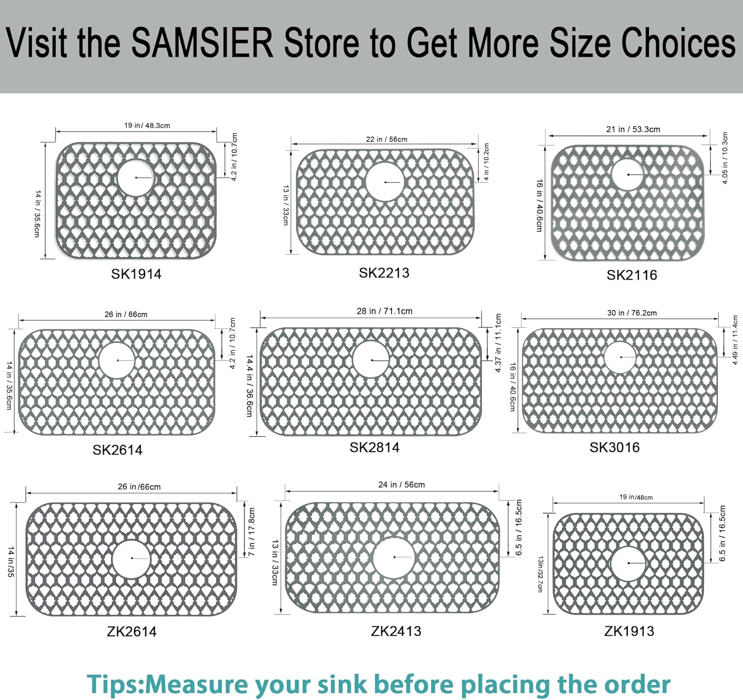 Sink Protectors for Bottom of Kitchen Sink 13x11 &16x12 &19x14 &21x16 &22x13 &24x13 &28x14 &30x16, Large Farmhouse Silicone Mats Grid (26”x14”, Rear Drain)