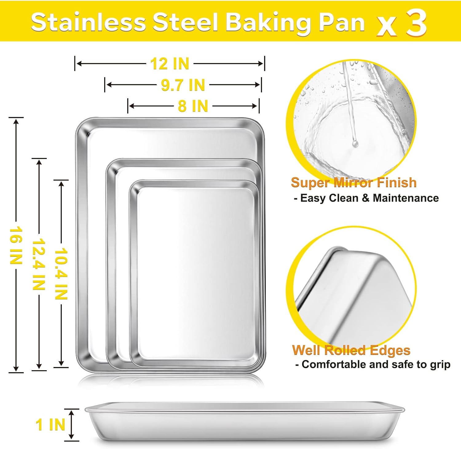 - 【HEALTHY STAINLESS STEEL】Made of good-grade stainless steel without toxin coating to avoid harmful substances leaching on to food at high heat baking, High quality steel with mirror polished surface, No worries rusting or flaking, Healthier alternative to aluminum pan