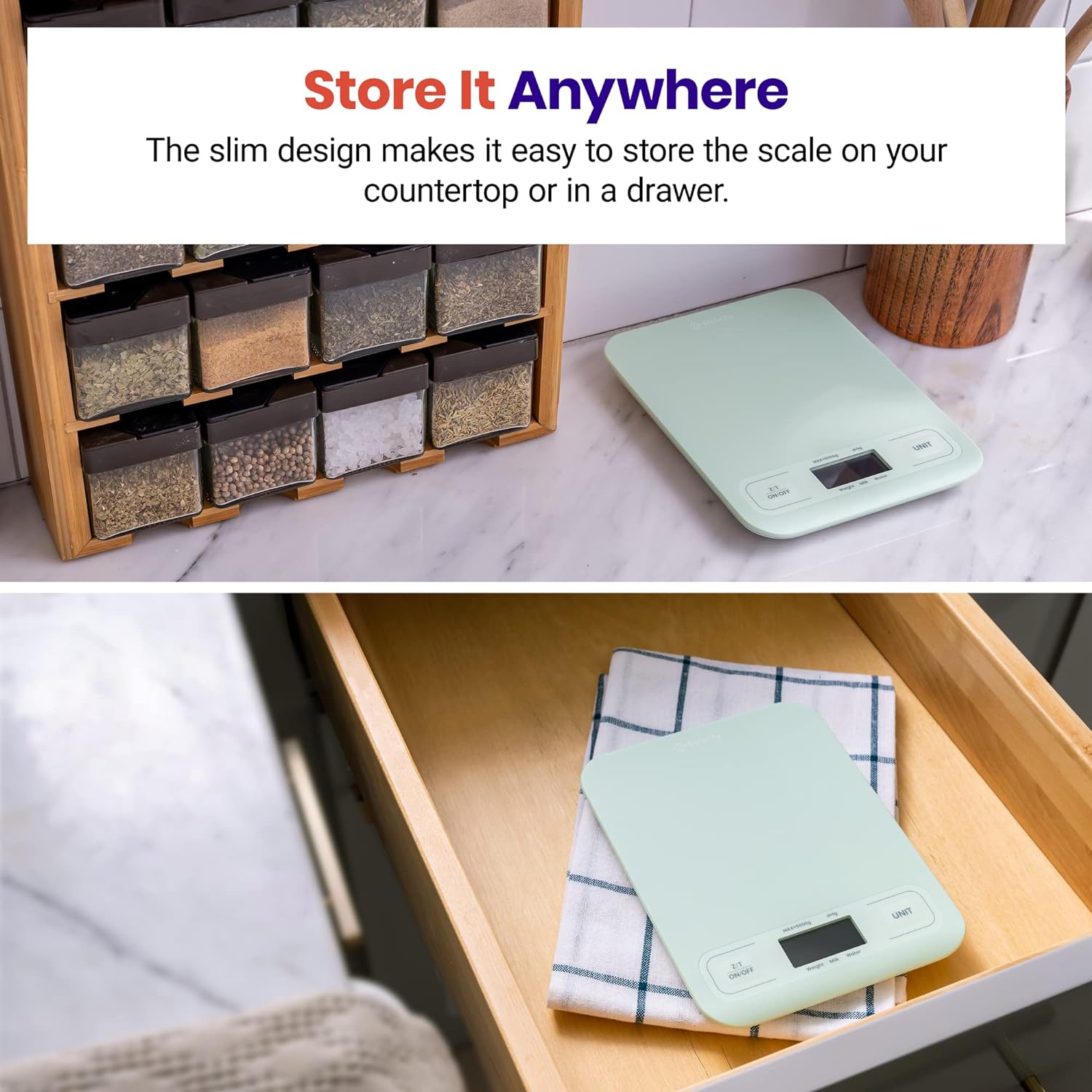 Etekcity Food Kitchen Scale, Digital Grams and Ounces for Weight Loss, Baking, Cooking, Keto and Meal Prep, LCD Display, Medium, Green