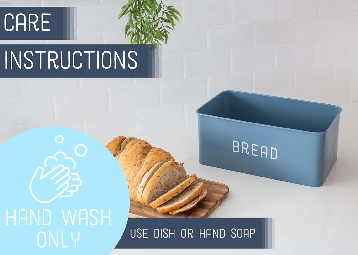 Nat & Jules Matte Blue 12 x 7 Metal Enamel Rubber Wood Lidded Bread Box