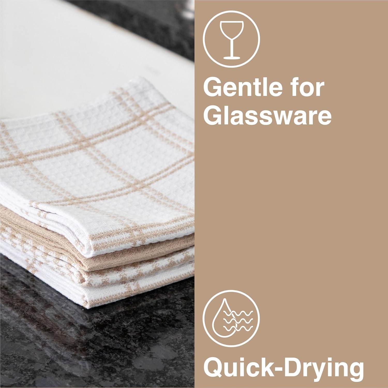 T-fal Premium Waffle Dish Cloths: Highly Absorbent, Super Soft Long Lasting - 100% Cotton, 12"x13" Towel for Cleaning & Drying, (8-Pack), Sand