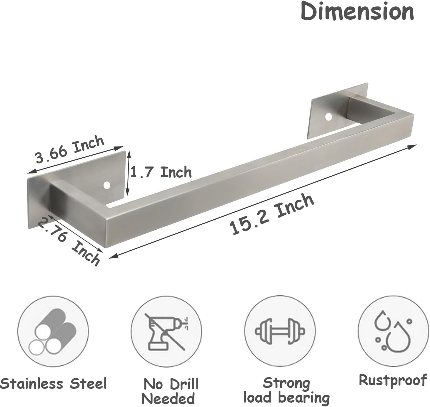 Bathroom Towel Bar Self Adhesive, No Drilling Towel Rack Easy to Install, Hand Towel Holder Made of Premium Stainless Steel Sticky on Hand Towel Hanger for Kitchen, Toilet.(16IN, Brushed)