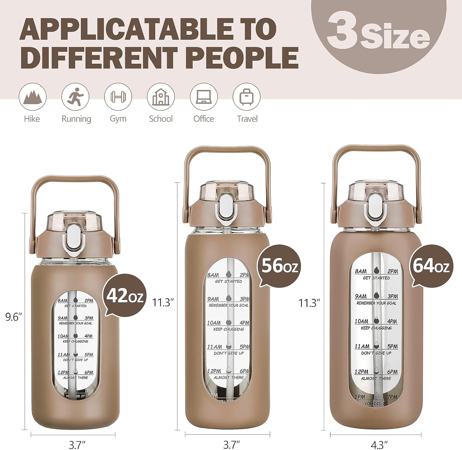 - ❤High-Quality Borosilicate Glass Bottle- This large motivationla water bottle is made of odorless, quality, borosilicate glass. Straw and lid are made of food-grade PP, BPA-free and eco-friendly.