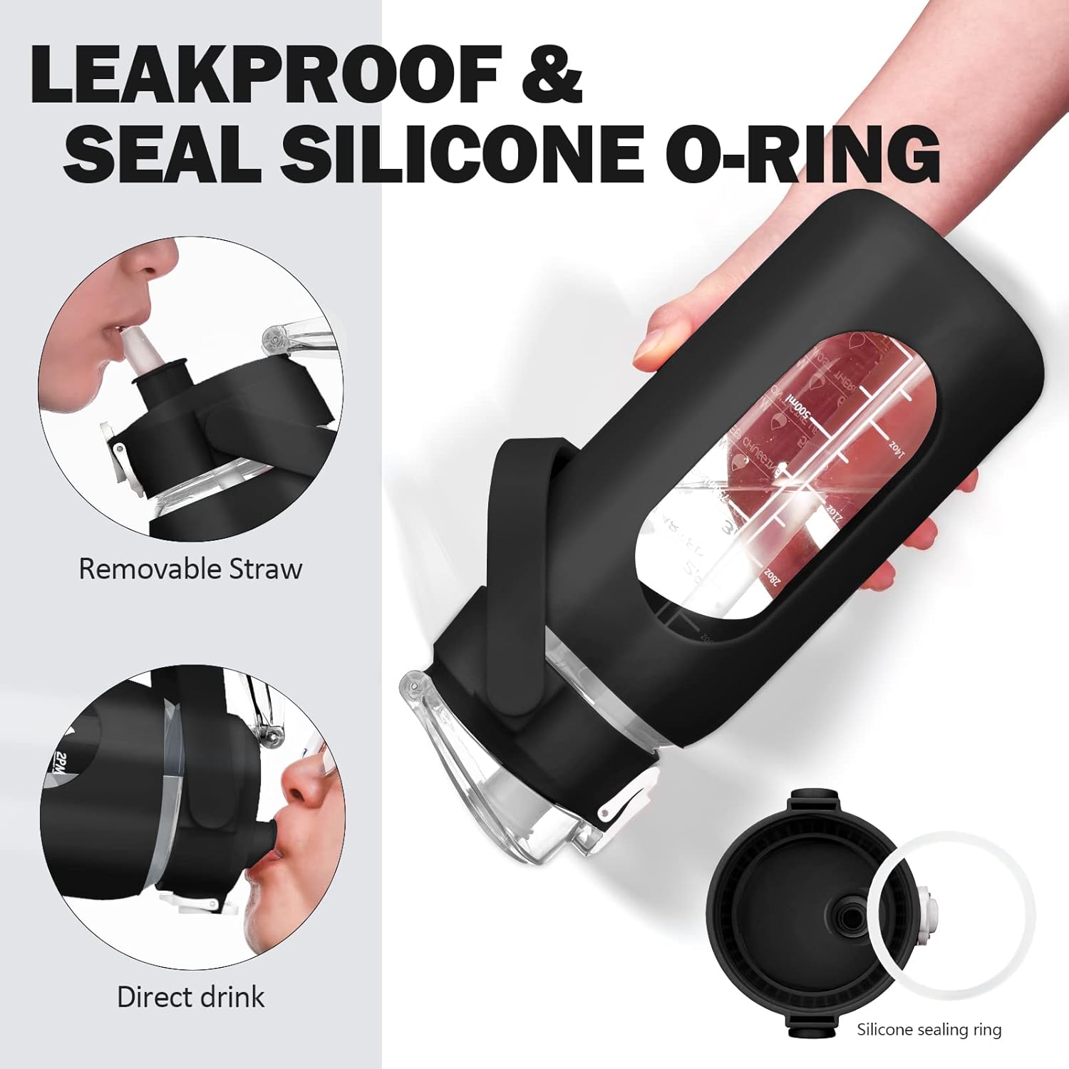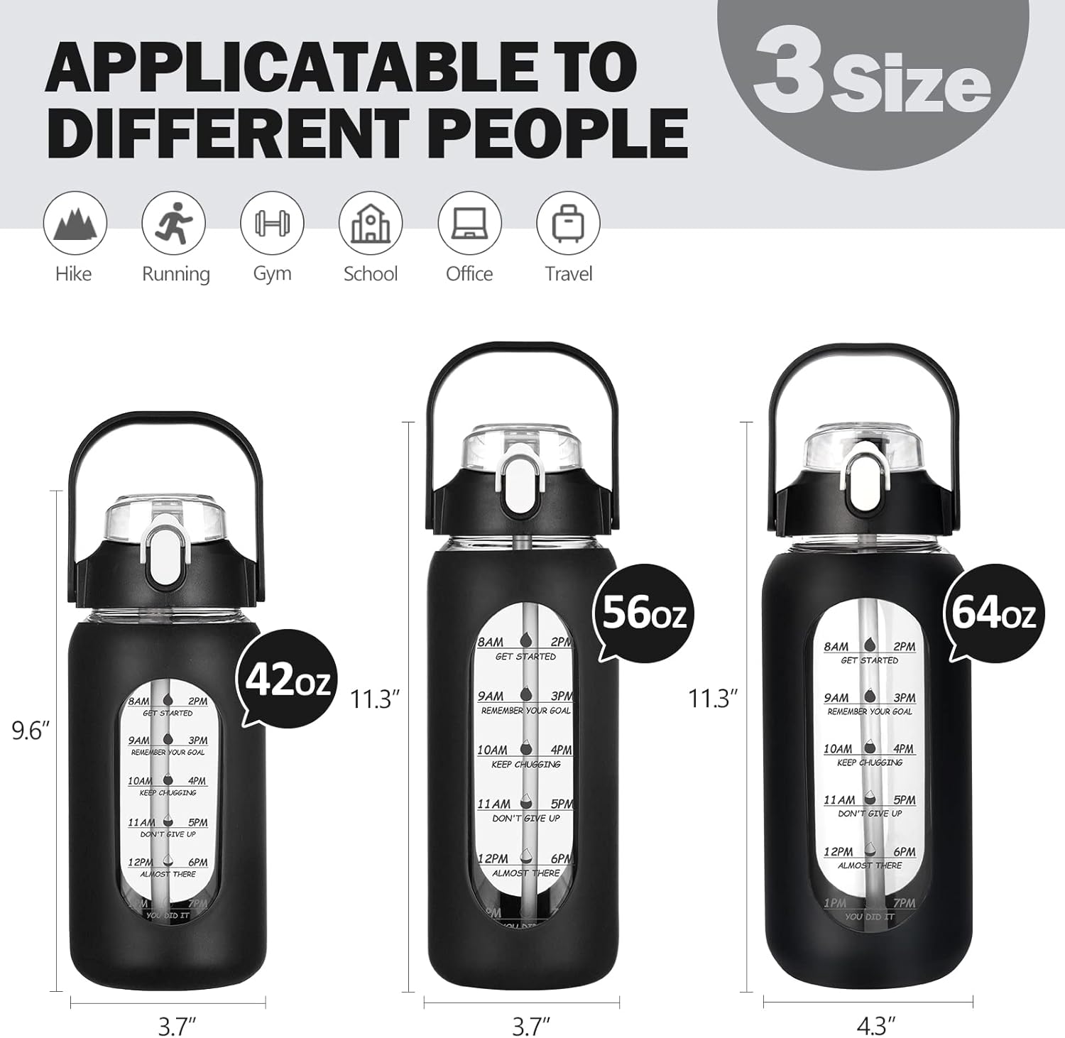 - ❤High-Quality Borosilicate Glass Bottle- This large motivational water bottle is made of odorless, quality, borosilicate glass. Straw and lid are made of food-grade PP, BPA-free and eco-friendly.