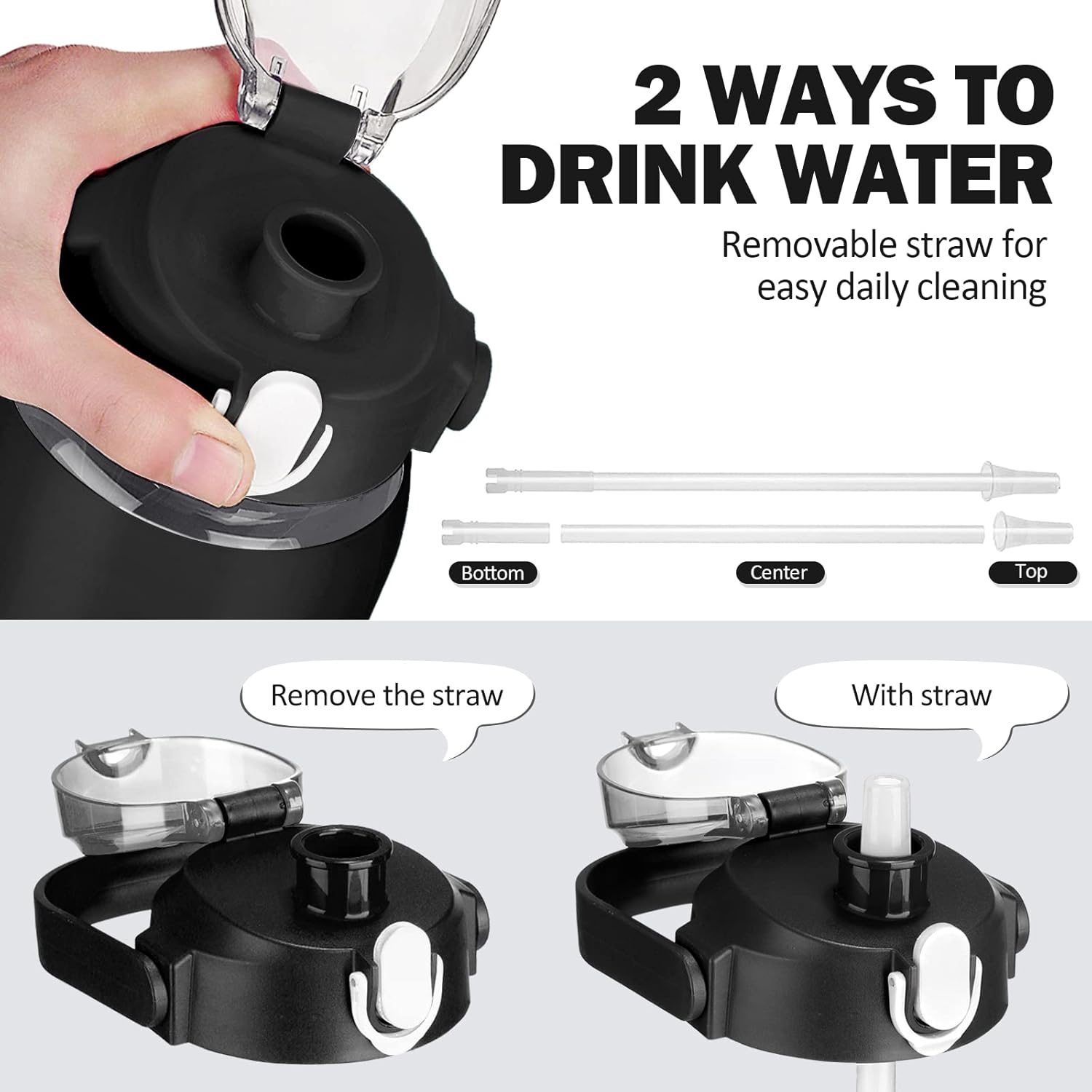 - ❤Glass Water Bottle with Pop-up Straw Lid- Our 64oz water bottle with straw is designed with an upgraded lid that ensures 100% leakproof and dustproof. Advanced one-click button makes you drink easier, just push the button and the straw will pop out automatically.