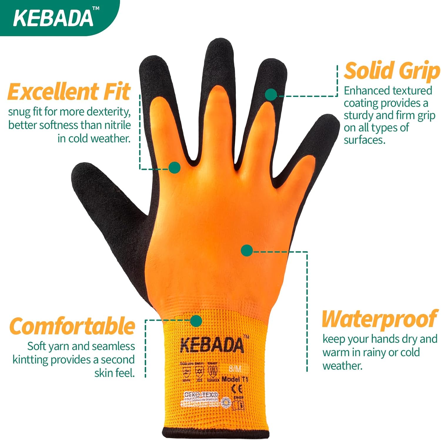 Kebada T1 Waterproof Winter Work Gloves for Men and Women,Insulated Work Gloves for Men Cold Weather,Warm Freezer Gloves XL