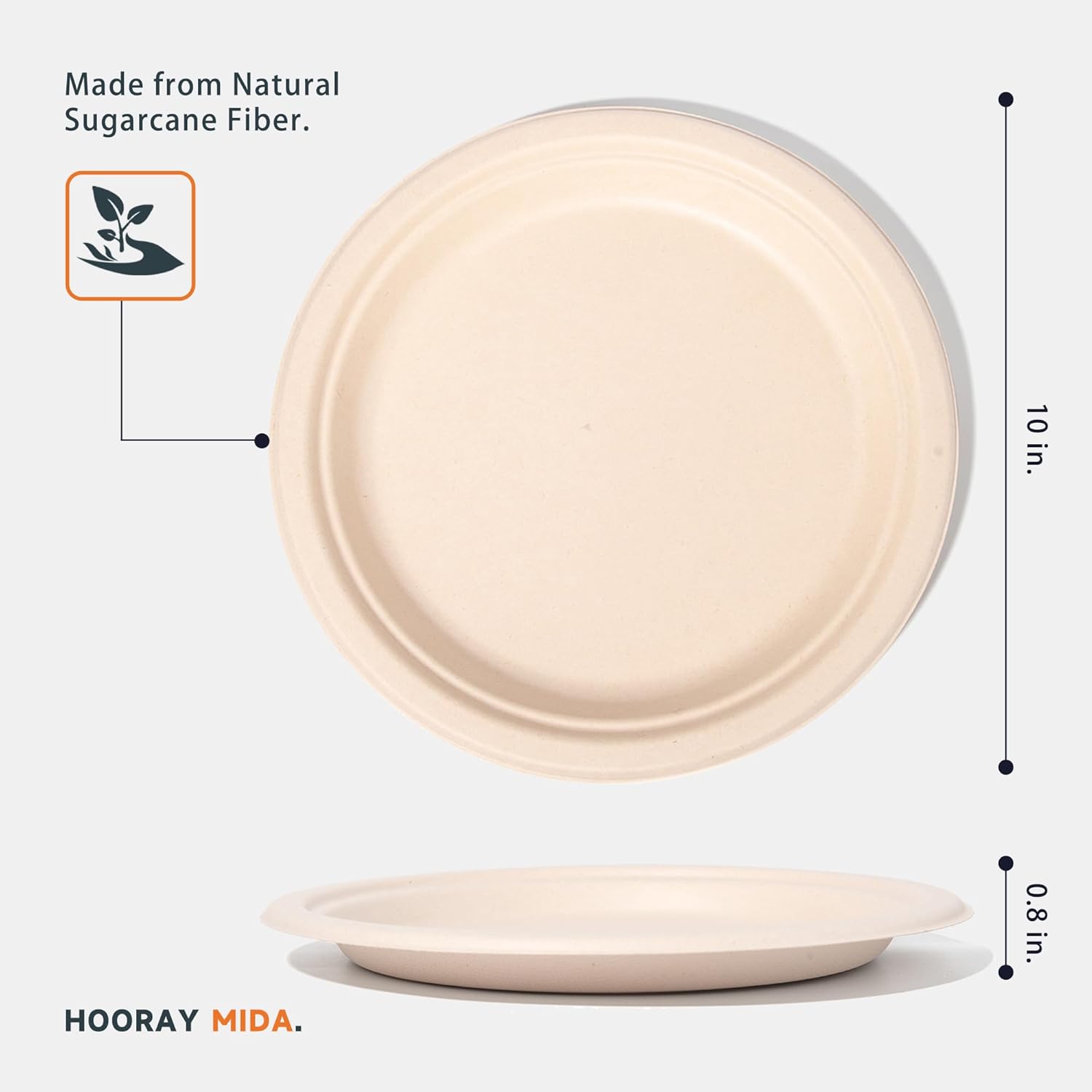 - 100% Compostable: These Hooray Mida paper plates are 100% compostable, making them environmentally friendly. After use, they can be easily decomposed and converted into natural organic matter.