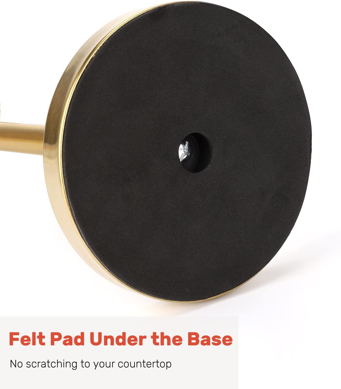 - Felt Pad On the Bottom of Base. The paper towel holder stand is heavy but won’t scratch your counter, because there is a big felt pad underneath the base which can protect the counter from scratching. It also won’t slide easily when you rip off a paper towel.