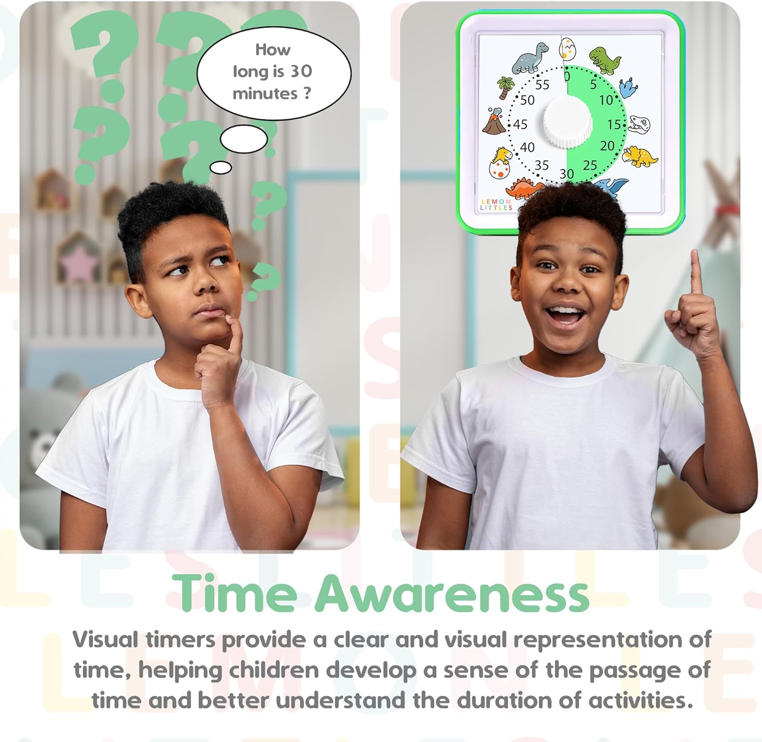 Visual Timer for Kids, Toddler, Autism, ADHD & Preschool Classroom - Animal Silent Countdown Timers - 60 Minute Productivity & Time Management Clock (Dinosaur)