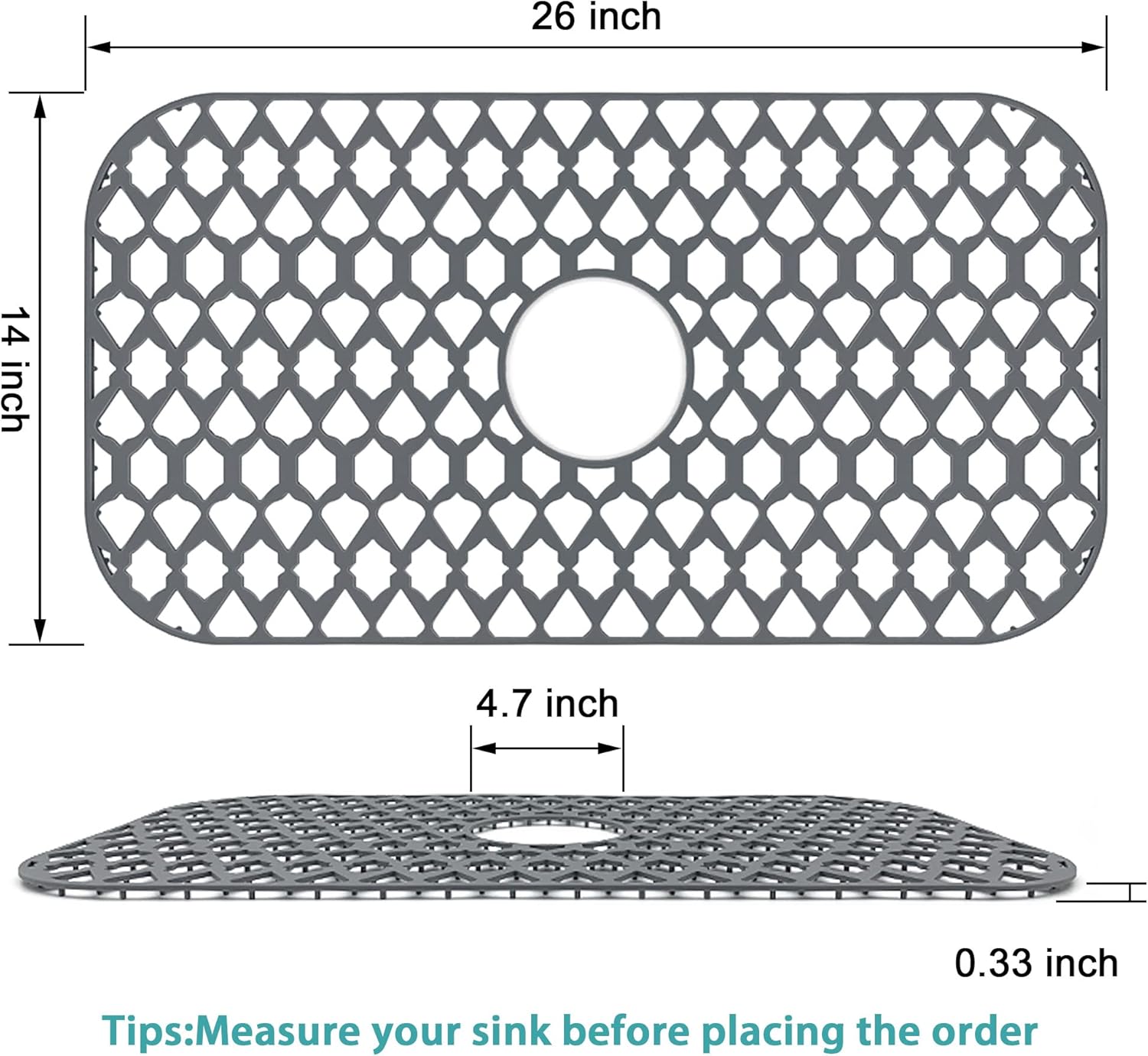 Large Sink Protectors for Kitchen Sink 19”x13”& 24”x13”& 26”x14”, Silicone Sink Mats Grid for Bottom of Farmhouse Stainless Steel Porcelain Sink (26”x14”, Center Drain)