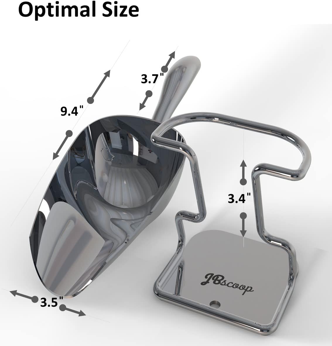 JBscoop Stainless Steel Ice Scoop 8 OZ, Metal Ice Scooper For Ice Maker, Multipurpose For Candy Kitchen Bar Party Wedding Pet Animal Dog Food Scoop Beach Shovel