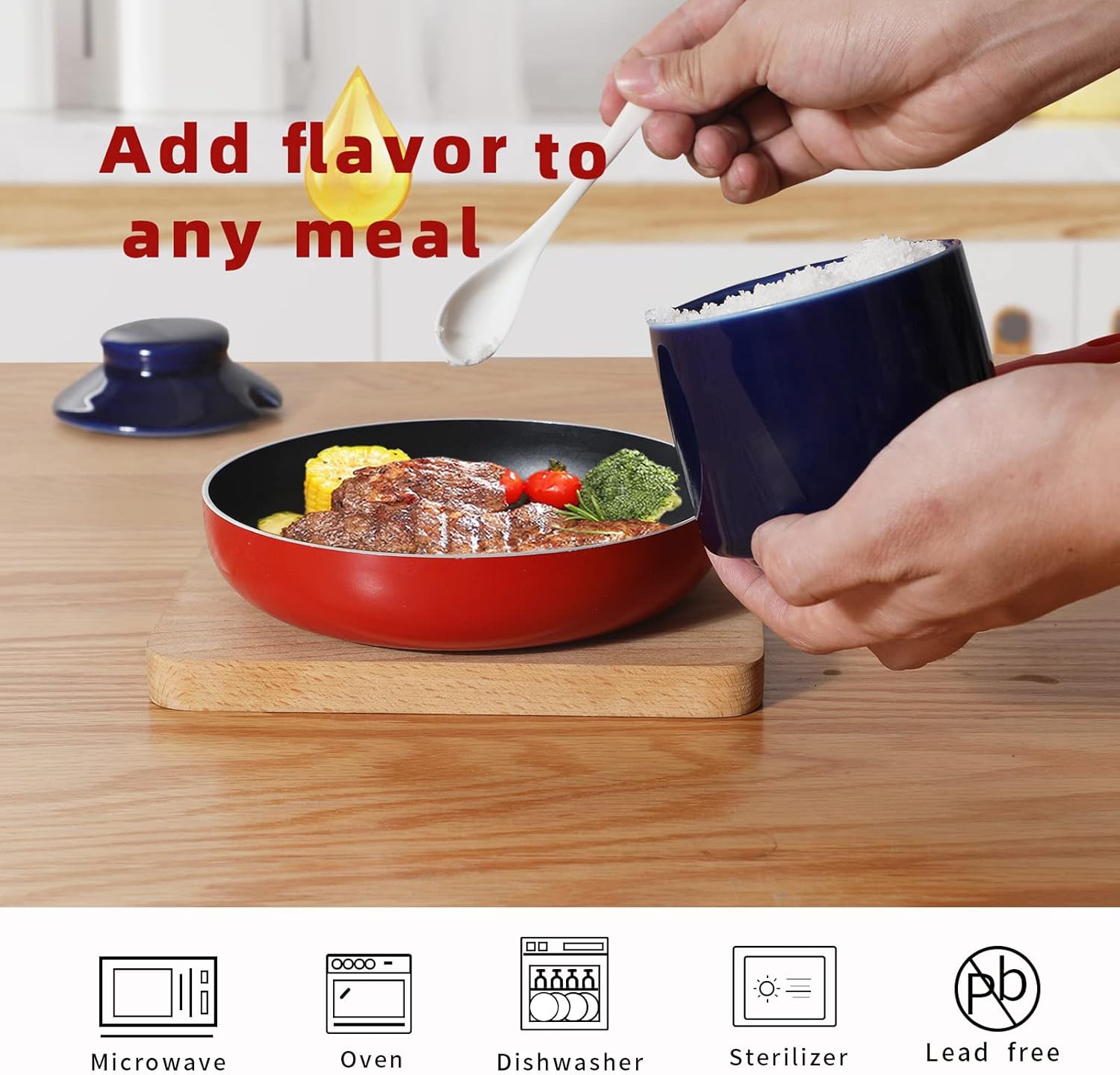 ONTUBE Ceramic Sugar Bowl with Lid and Spoon,Porcelain Seasoning Box Salt Bowl,8oz (Navy)