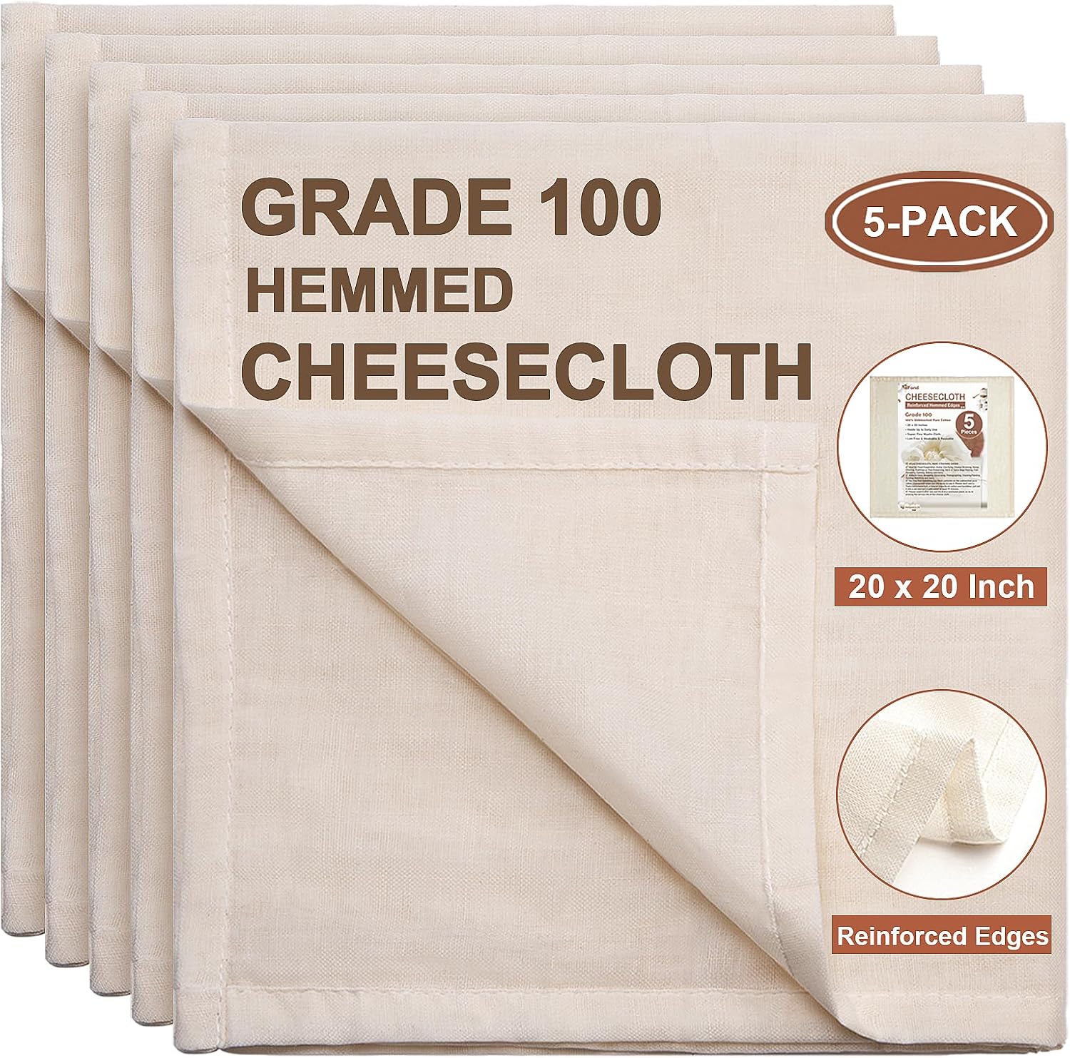 eFond Cheese Cloths | 5-Pack, 20x20Inch Squares with Hemmed Edges | Grade 100 Ultra Fine Reusable Cheesecloth for Straining | Unbleached Cotton Muslin Cloths | For Nut Milk, Butter, Baking & Cooking