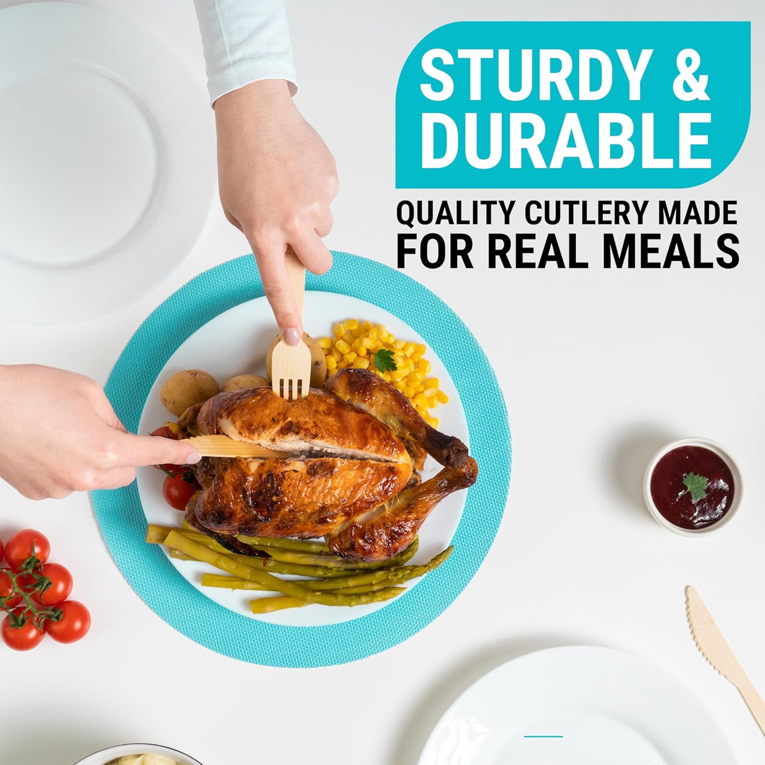 - BUILT TOUGH FOR REAL MEALS: Say Goodbye to Flimsy Biodegradable Utensils Snapping in The Middle of Your Meals. Say Hello To The Sturdiest Disposable Cutlery in The Market.