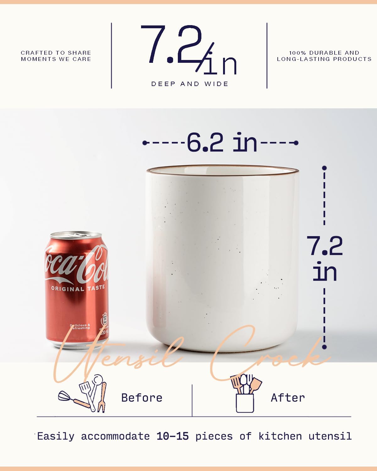 getstar Kitchen Utensil Holder, Large Ceramic Cooking Utensil Holder (H7.2” x W6.2”) for Kitchen Counter with Cork Mat at Bottom, Farmhouse Decor