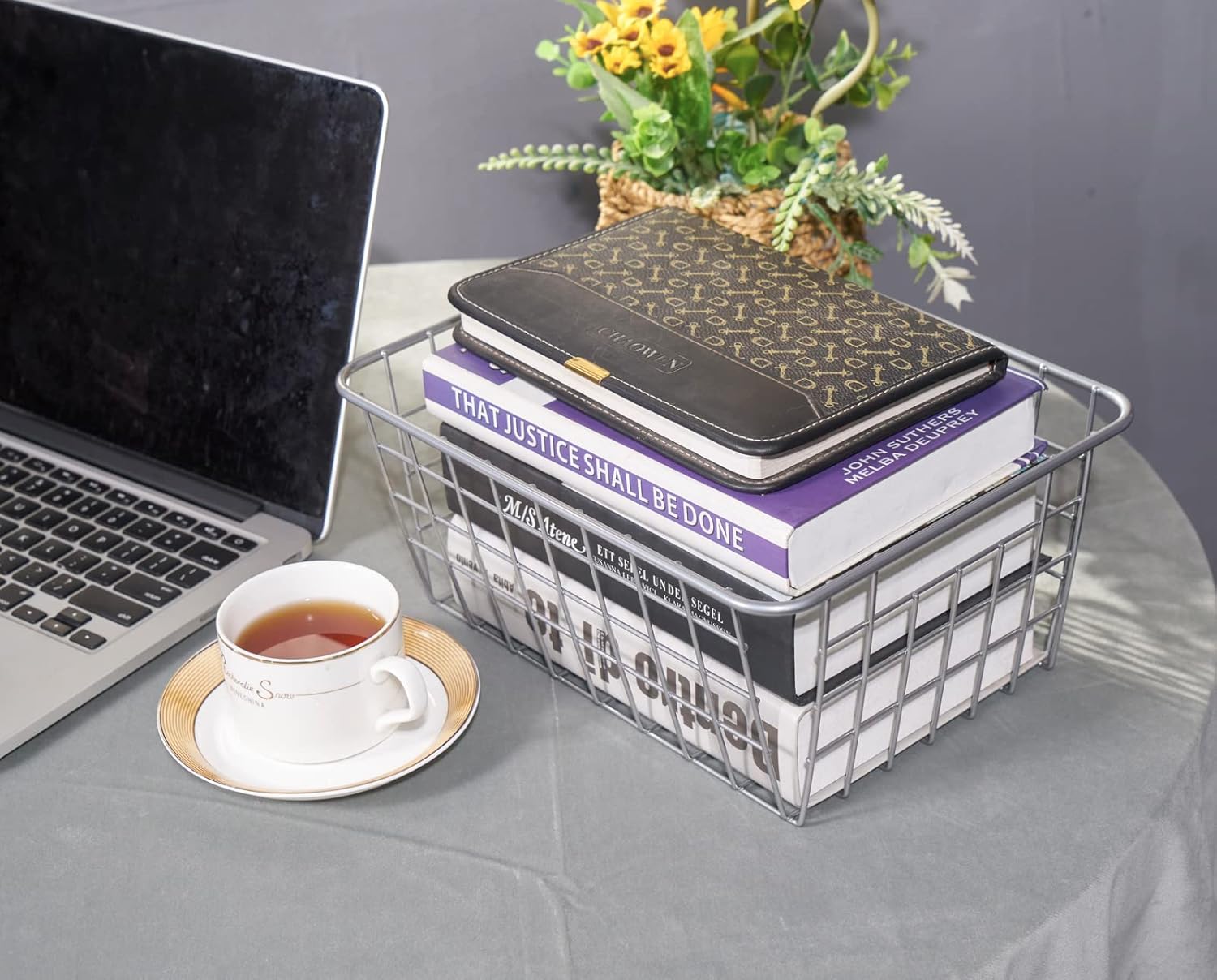 - A basket multi-purpose, flexible storage: the main material of the wire storage basket is wire, with good ductility and plasticity, can store fruits and vegetables, toys, books, toiletries, etc., easily solve the problem of kitchen, bathroom, living room clutter.