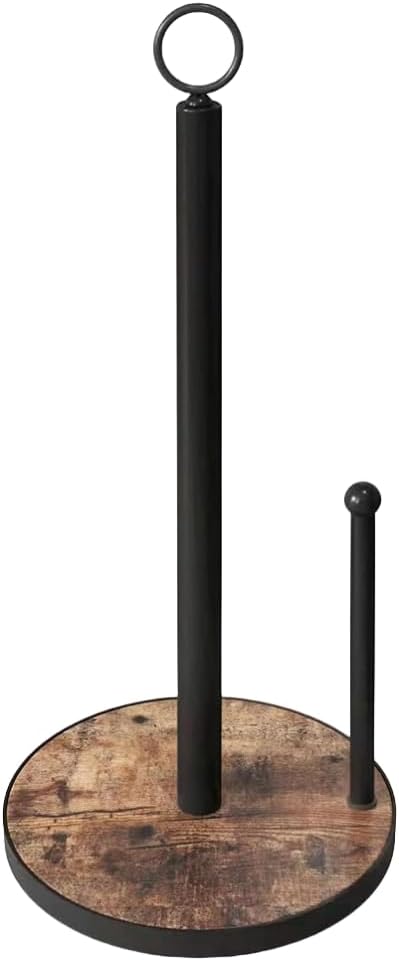 - Weighted Wooden Base - Ultra-stability of the paper towel holder stand is guaranteed thanks to its heavy-duty rustic wood base, which prevents it from tipping over whenever tearing off a sheet of paper towel.