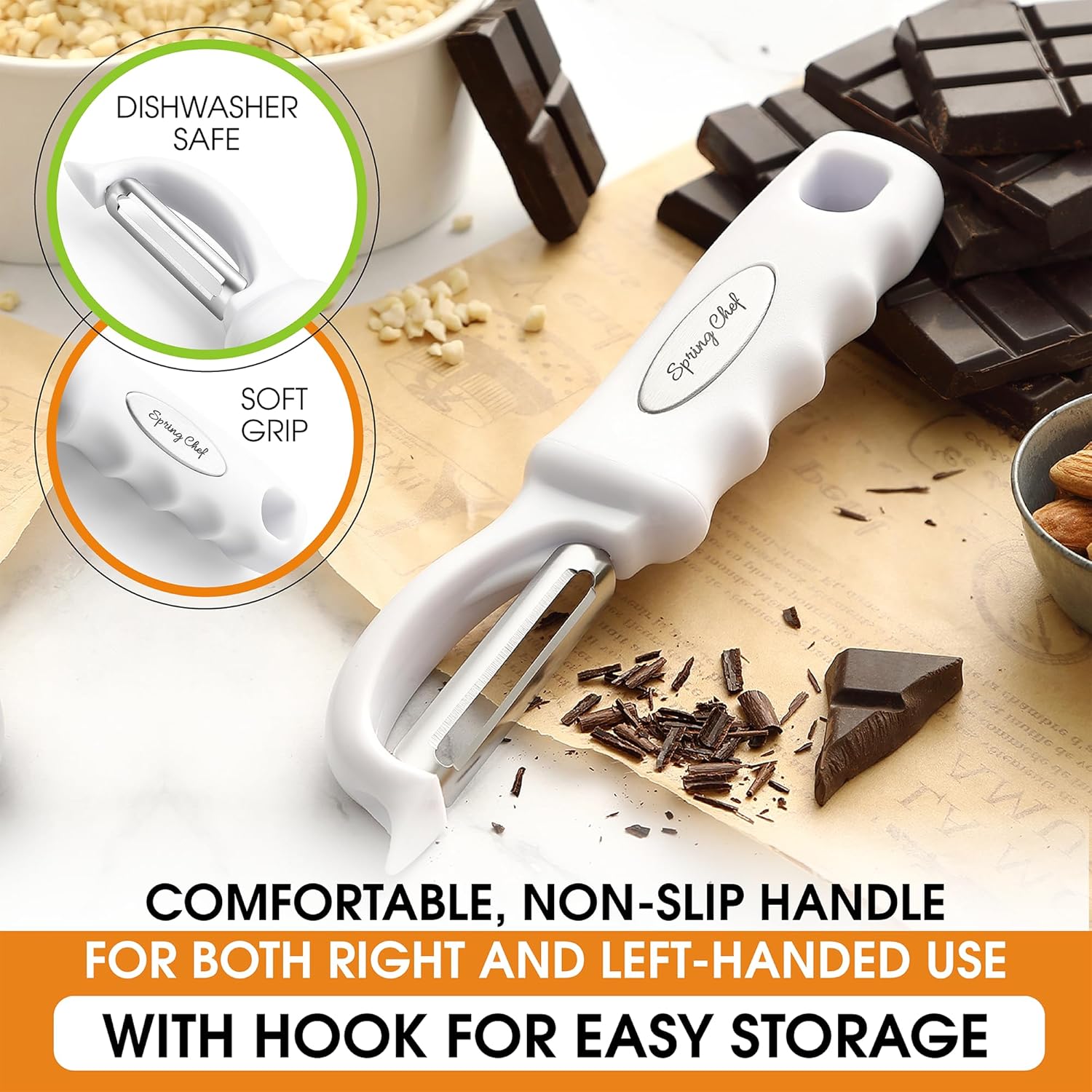 Spring Chef Premium Swivel Vegetable Peeler, Comfrotable Handle and Ultra Sharp Stainless Steel Blades - Perfect Kitchen Peeler For Veggie, Fruit, Potato, Carrot, Apple - White