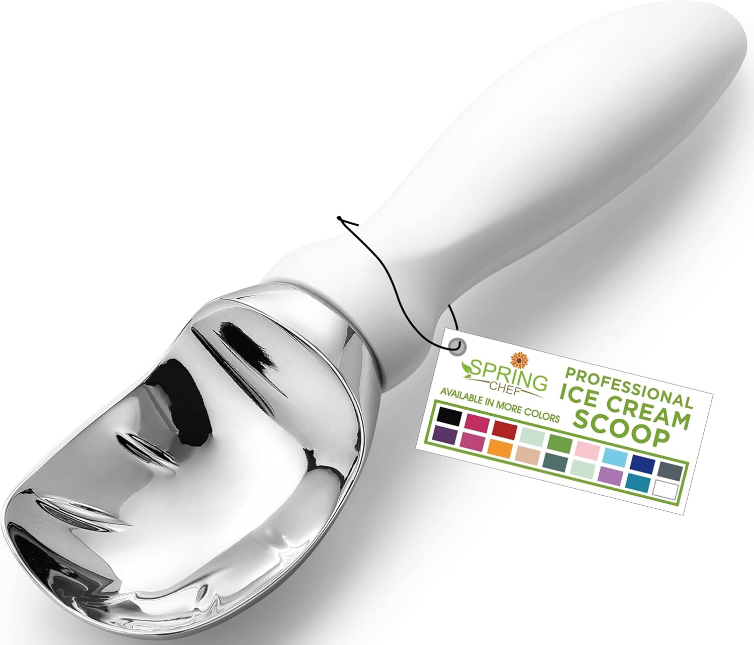 Spring Chef White Commercial Ice Cream Scoop with Comfortable Handle - Heavy Duty Metal Ice Cream Scooper for Frozen Yogurt, Gelato, Sorbet, Melon, Sundae - Dishwasher Safe Kitchen Tool