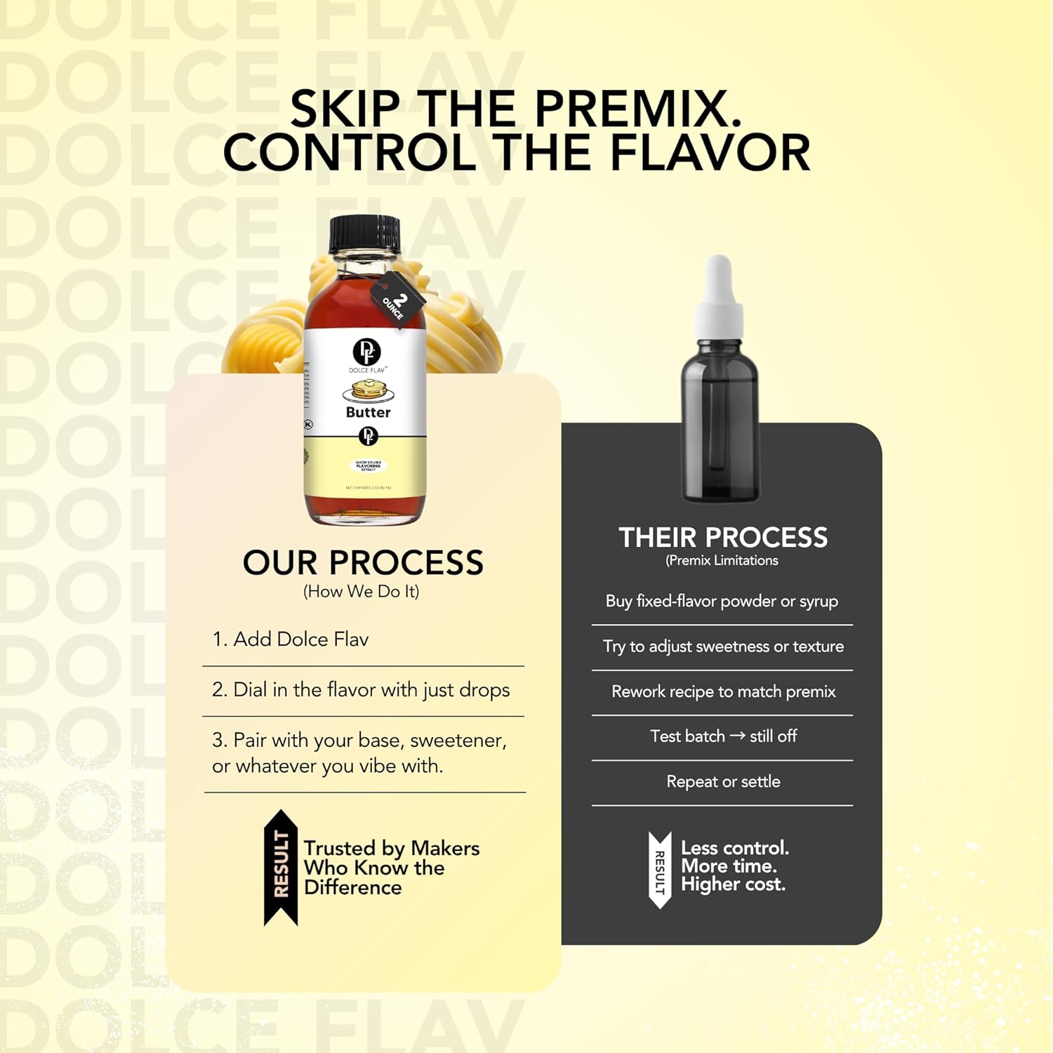 - Versatility: Dolce Flav's butter flavoring can be used in a wide range of applications, including baking, cooking, and adding flavor to drinks. This makes it a great choice for both home cooks and professional chefs.