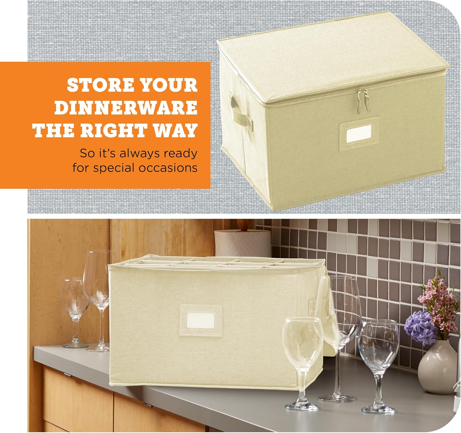 storageLAB Wine Glass Storage Containers, Hard Shell Organizer for Stemware and Glassware Sets, Stackable Wine Glass Storage Box with Dividers for Kitchen and Moving Supplies - 1 Pack, Cream