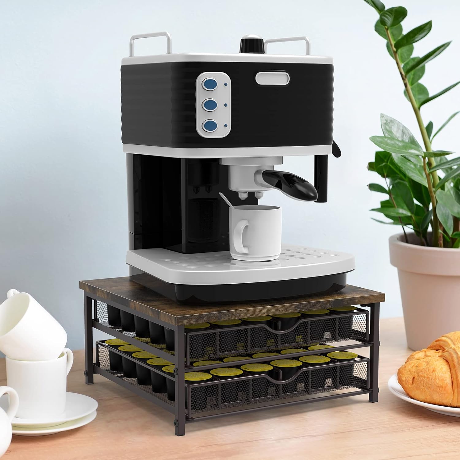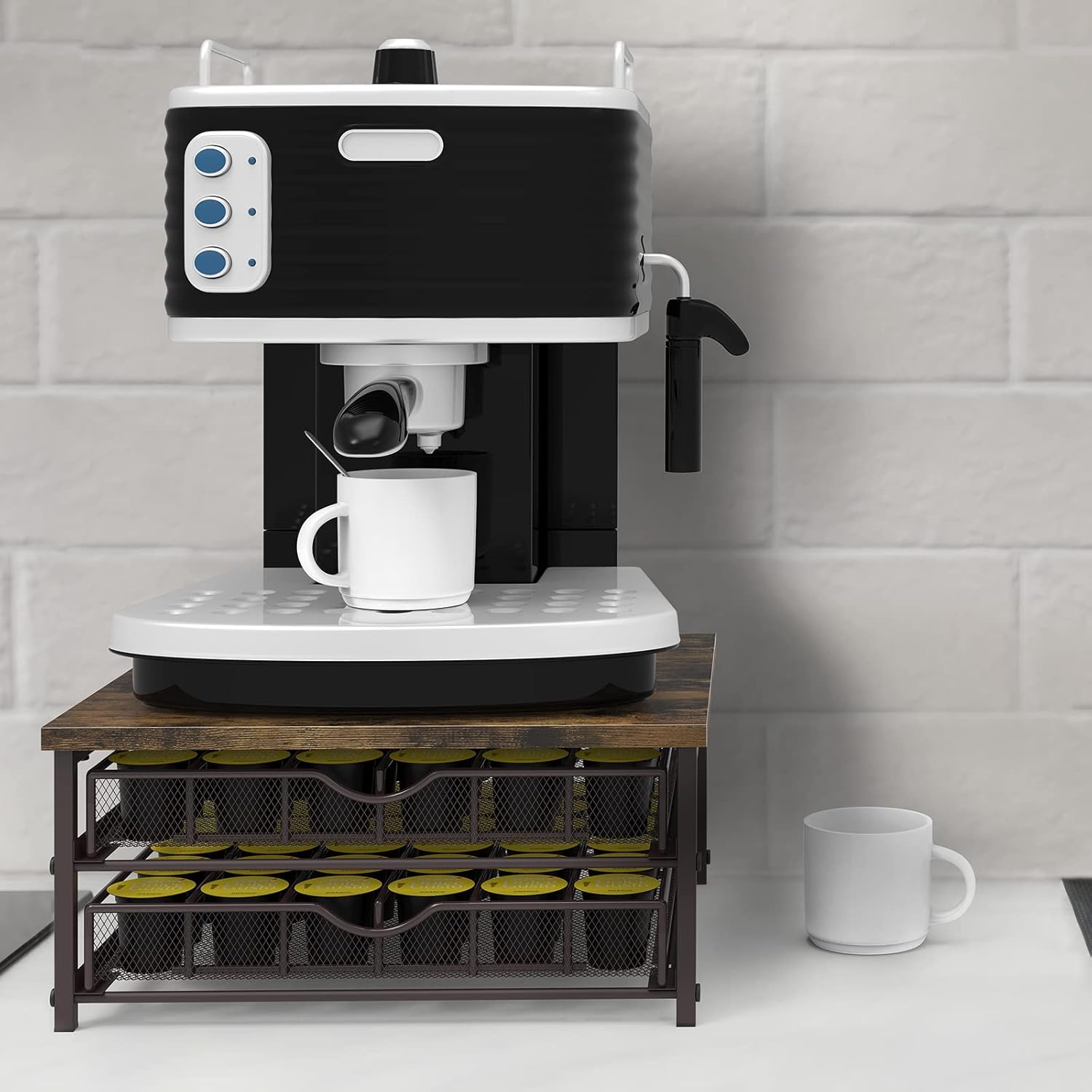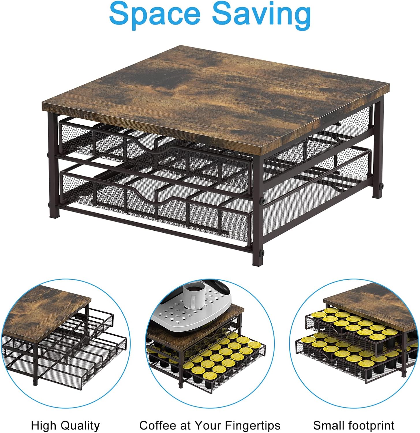 - 【Rustic and Sturdy Design】 : The coffee pod holder wooden top will firmly support your coffee maker or coffee brewer, durable and effective in preventing deformation. The stylish rustic style keurig pods holder blends into your office setting and kitchen decoration to spruce up your space.