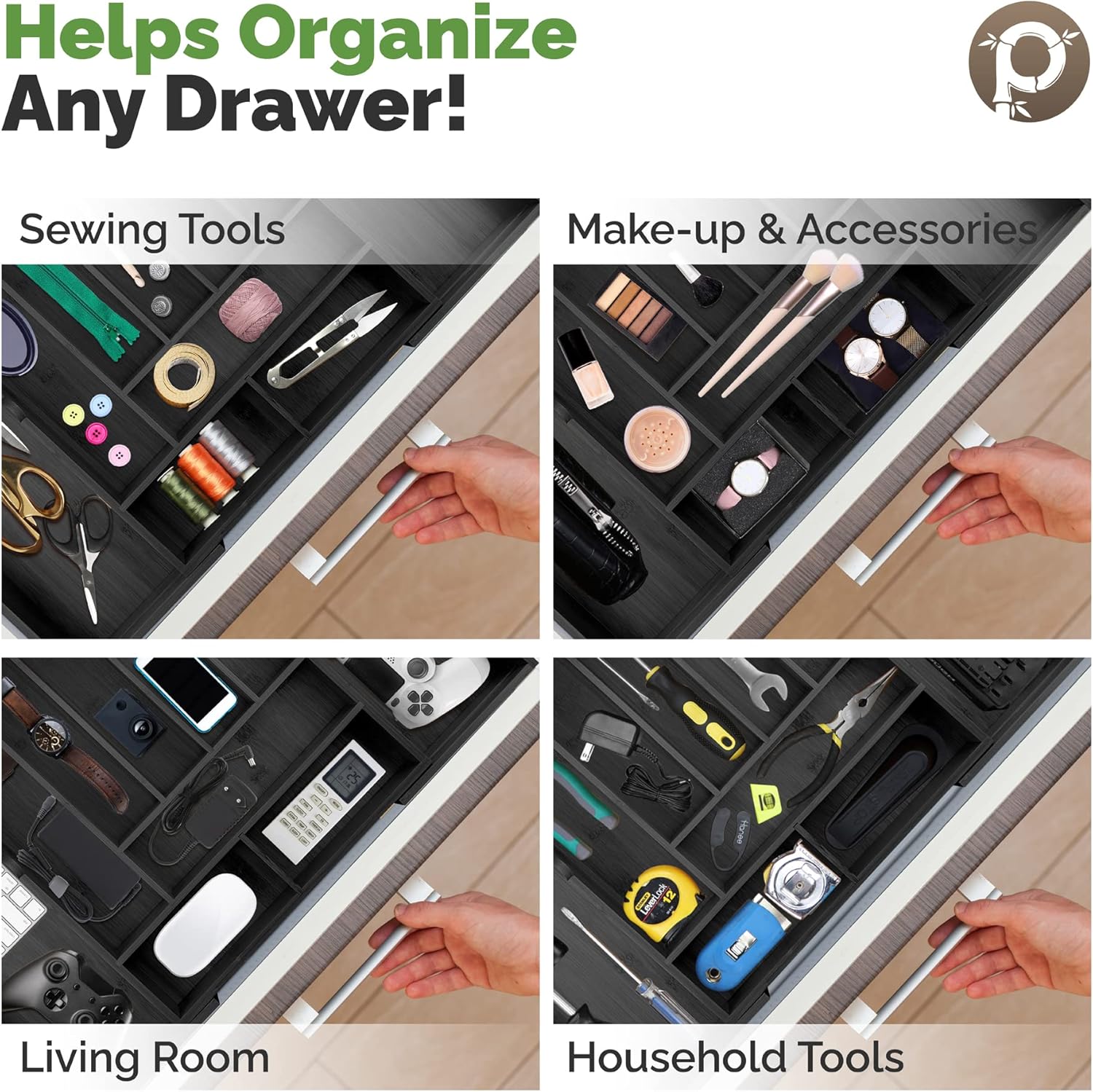 - MEASUREMENT CONSIDERATIONS: We highly recommended that you measure your drawer carefully before ordering to avoid any inconvenience. Enjoy its multi-functional usability for storing small items that tend to get misplaced like paper clips hair ties, safety pins, etc!