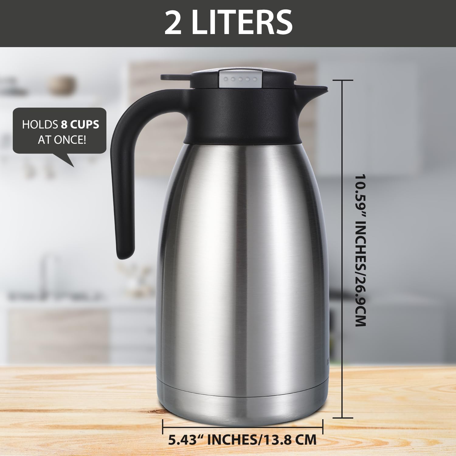 Heritage66 Thermal Coffee Carafe Dispenser, Triple Wall Stainless Steel, Vacuum Insulated, 34 oz/1 Liter, Keeps Hot 12 Hours (2 Liter / 68 Oz)