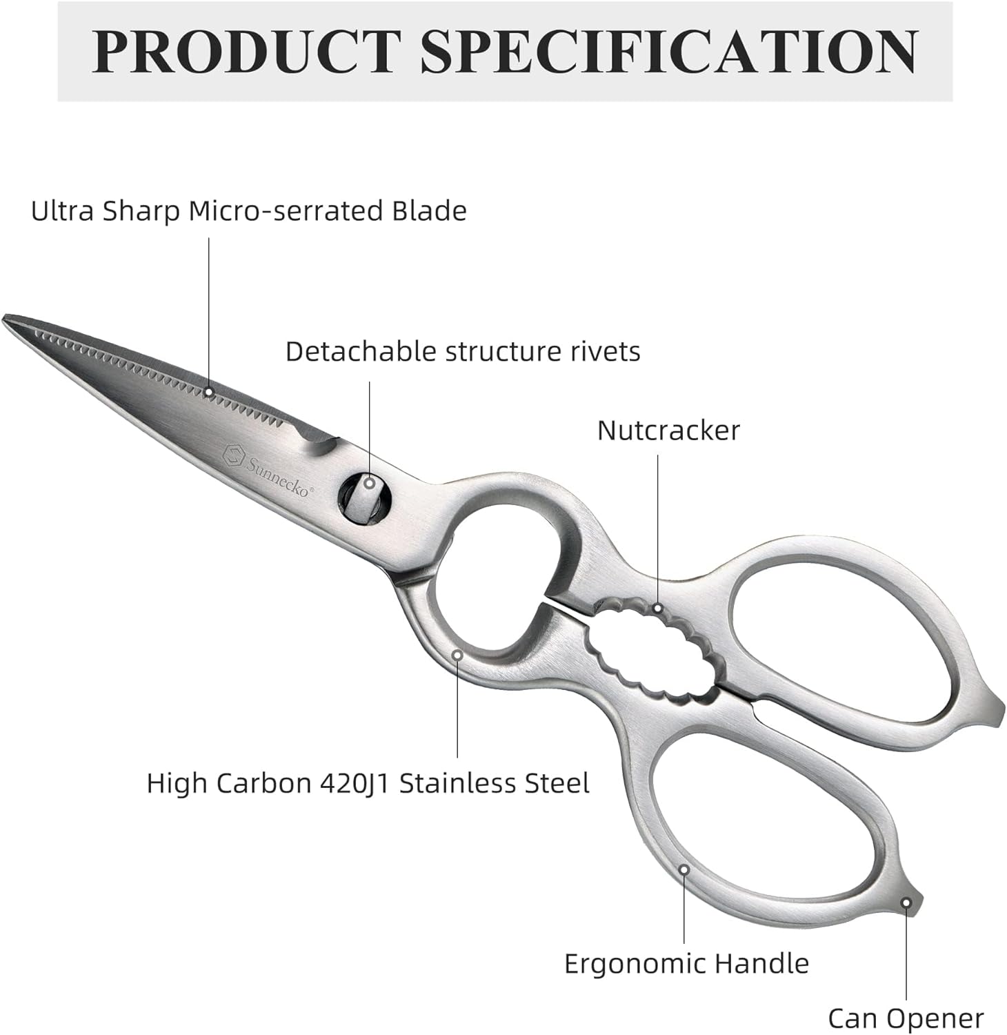 Sunnecko Heavy Duty Kitchen Scissors - Stainless Steel Kitchen Shears, Ultra Sharp Micro Serrated Poultry Shears, Cooking Scissors for Meat, Dishwasher Safe