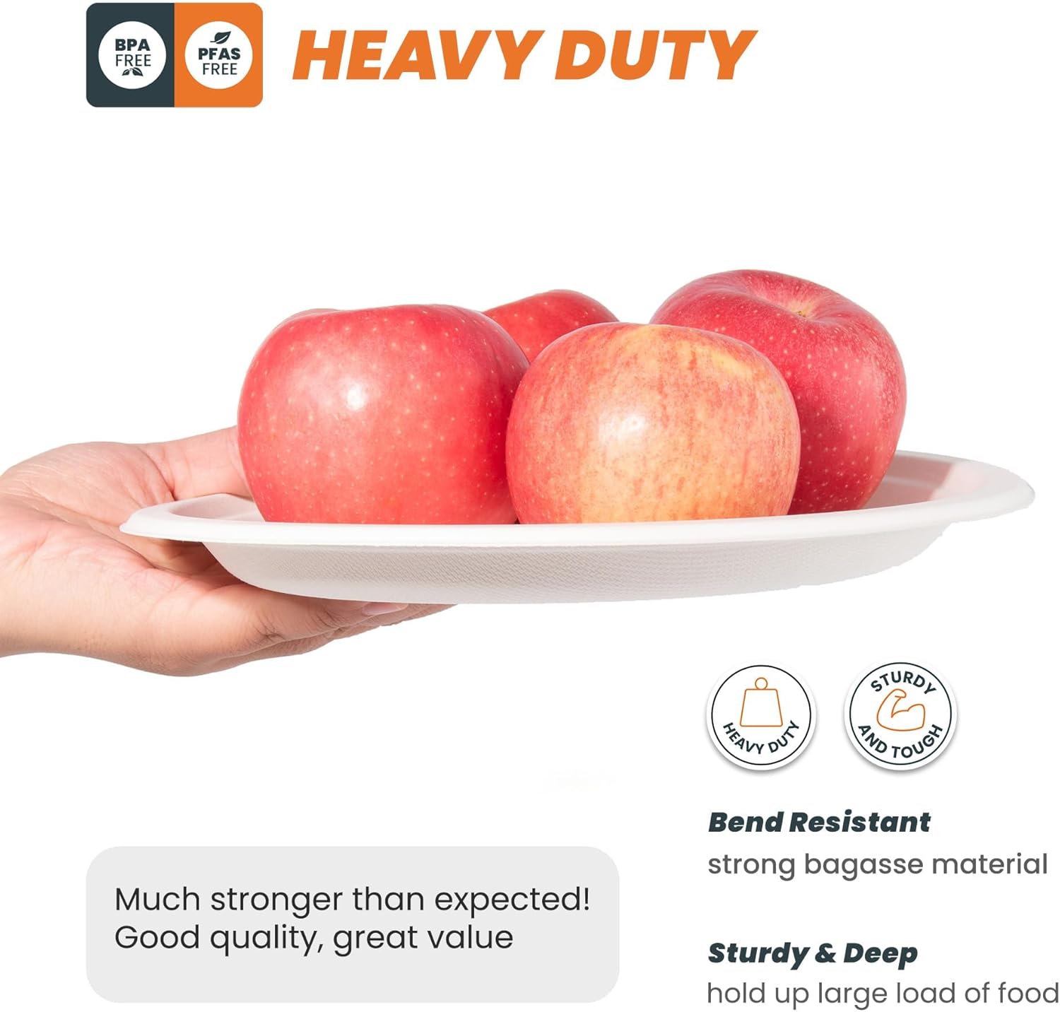 - HEAVY-DUTY AND MICROWAVE SAFE: Our plates are super sturdy and durable enough to handle kinds of foods: lunches, salads, appetizers, and more. These heavy duty paper plates are safe for both microwave and freezer. They can be well used for hot and cold food, able to resist oil, sogginess, bending, and knife cuts. Plus our paper plates are more stronger than standard disposable paper or plastic ones.